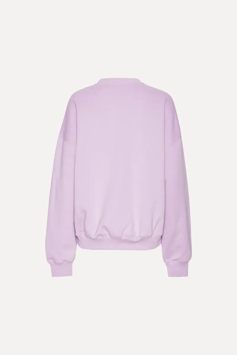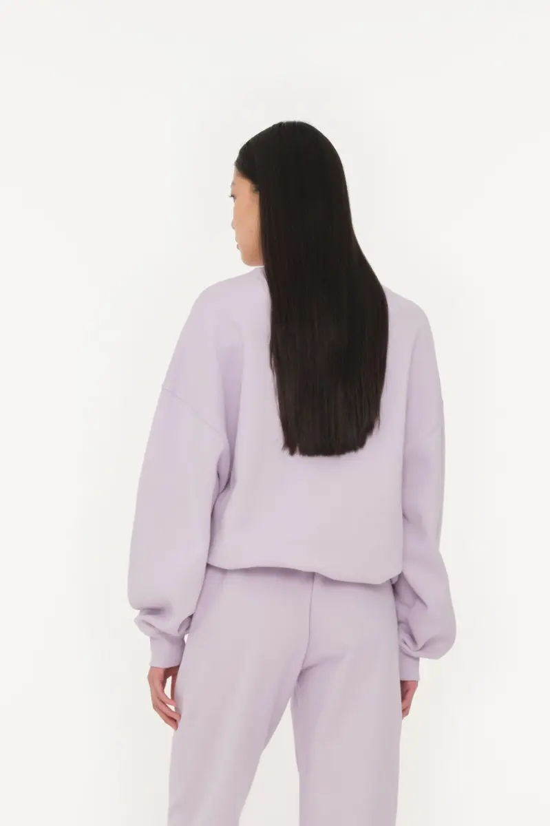 Heavy Sweat Crewneck Light Purple features a classic crewneck design with an oversized fit. Embroidered logo artwork is displayed on the chest. The cuffs and hem are elasticated for added comfort and a structured look.