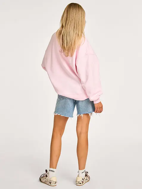 Heavy Sweat Crewneck Light Purple features a classic crewneck design with an oversized fit. Embroidered logo artwork is displayed on the chest. The cuffs and hem are elasticated for added comfort and a structured look.