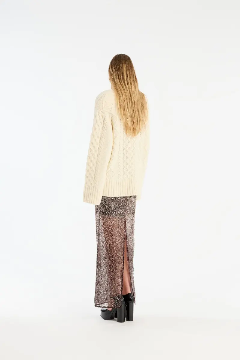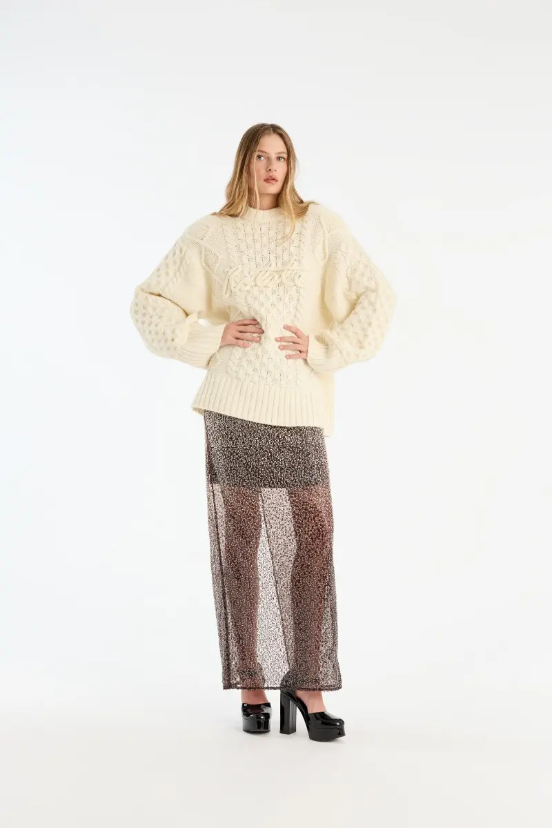 Knit Cable Crewneck White is a chunky cable-knit sweater with an oversized silhouette.