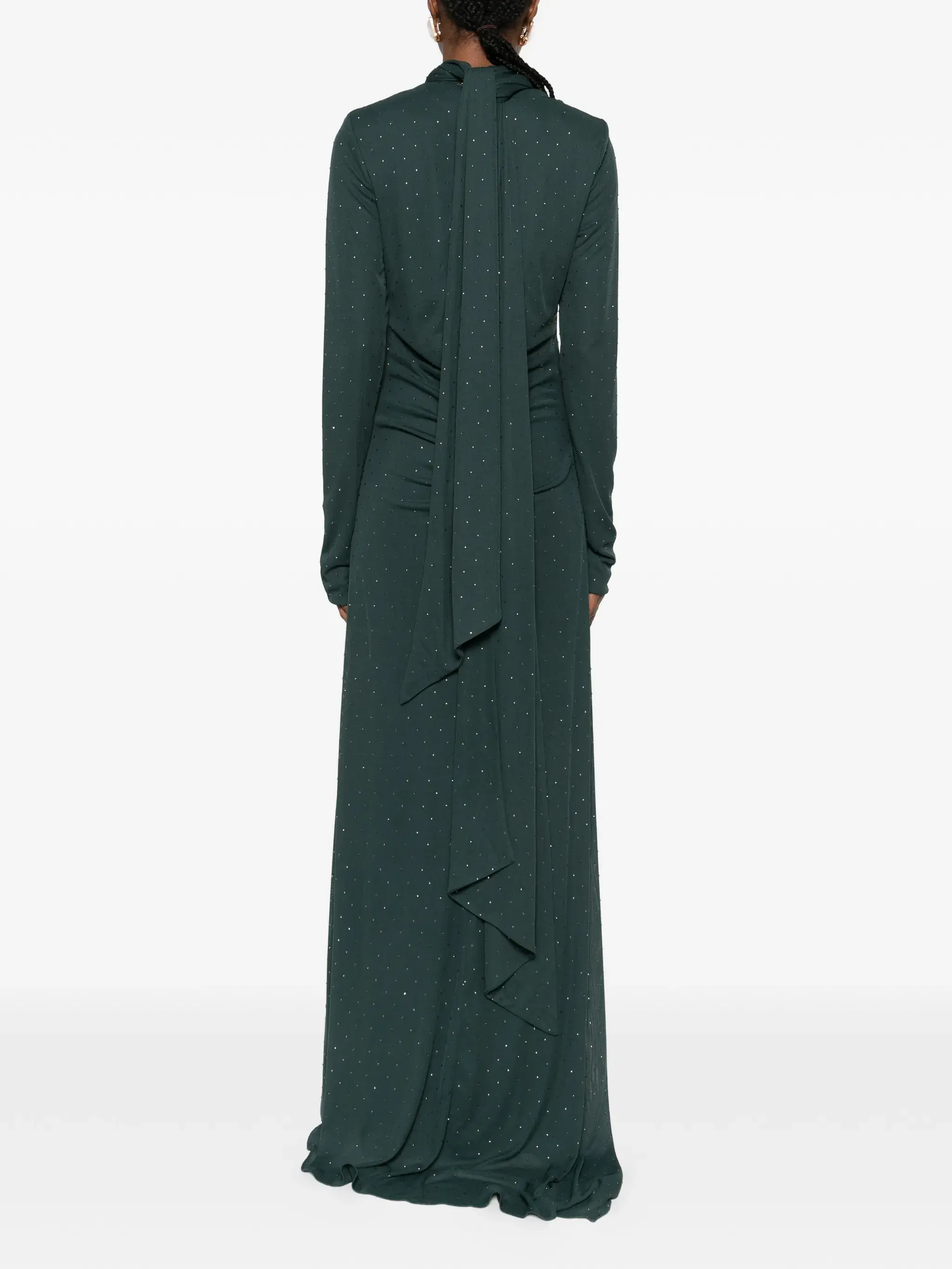 Highlights green scarf detail long sleeves open back back zip fastening maxi length Composition Outer: Polyester 100%