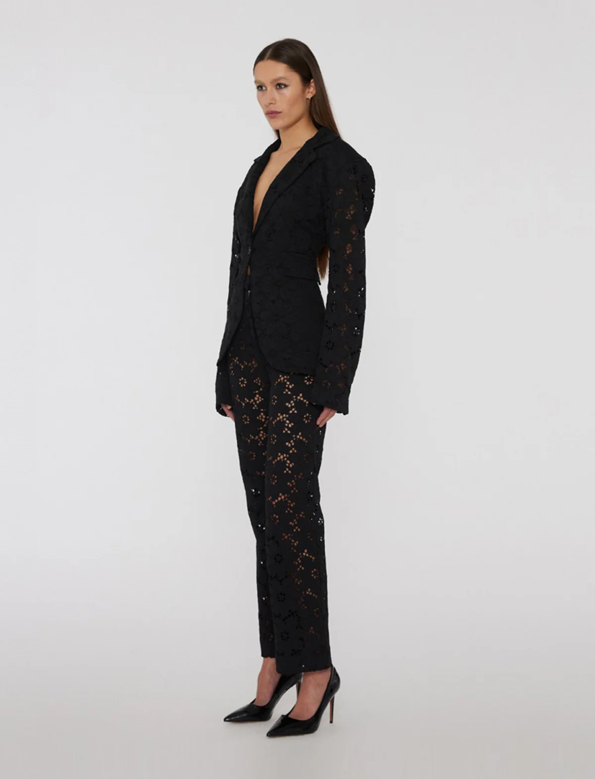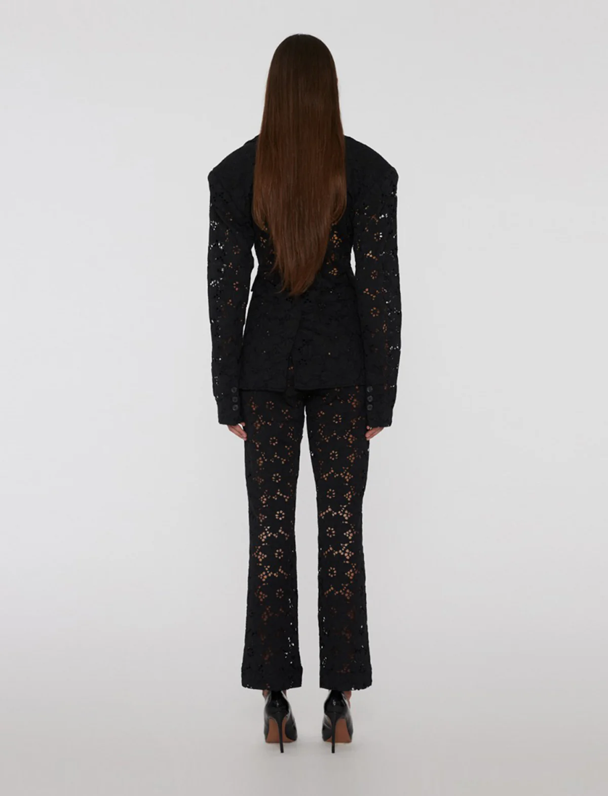 Cut into a high-waisted, slim-fit silhouette, this bold lace pant sports a bright, rich pink sure to turn heads. With detachable inner pants, wear yours with the matching Lace Figure Fitted Blazer to make a fashion statement downtown, or play it casual with a t-shirt and your favourite sneakers.