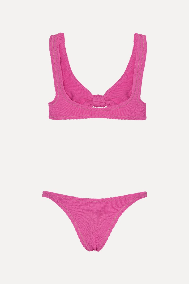 UNLEASH YOUR BEACHSIDE ALLURE WITH OUR BIKINI, CRAFTED FROM SUPER-STRETCHY CRINKLE FABRIC FOR A FLAWLESS FIT ON ANY FIGURE. THE BOW DETAIL AT THE FRONT ADDS A TOUCH OF CHARM, COMPLEMENTED BY BRAZILIAN BOTTOMS FOR A FLATTERING SILHOUETTE. FINISHED WITH ELEGANT GOLD STITCHING, IT'S THE EPITOME OF POOLSIDE GLAMOUR.