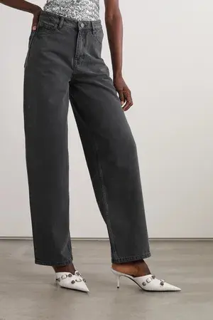 Do denim differently with Rotate Birger Christensen's Dixie jeans. Made from recycled denim in a cool gray wash, they're detailed with a sparkling crystal logo at the back of the waistband. Wear them with your favorite tank or take a cue from the Fall '23 show and style yours with an '80s-inspired crop top.