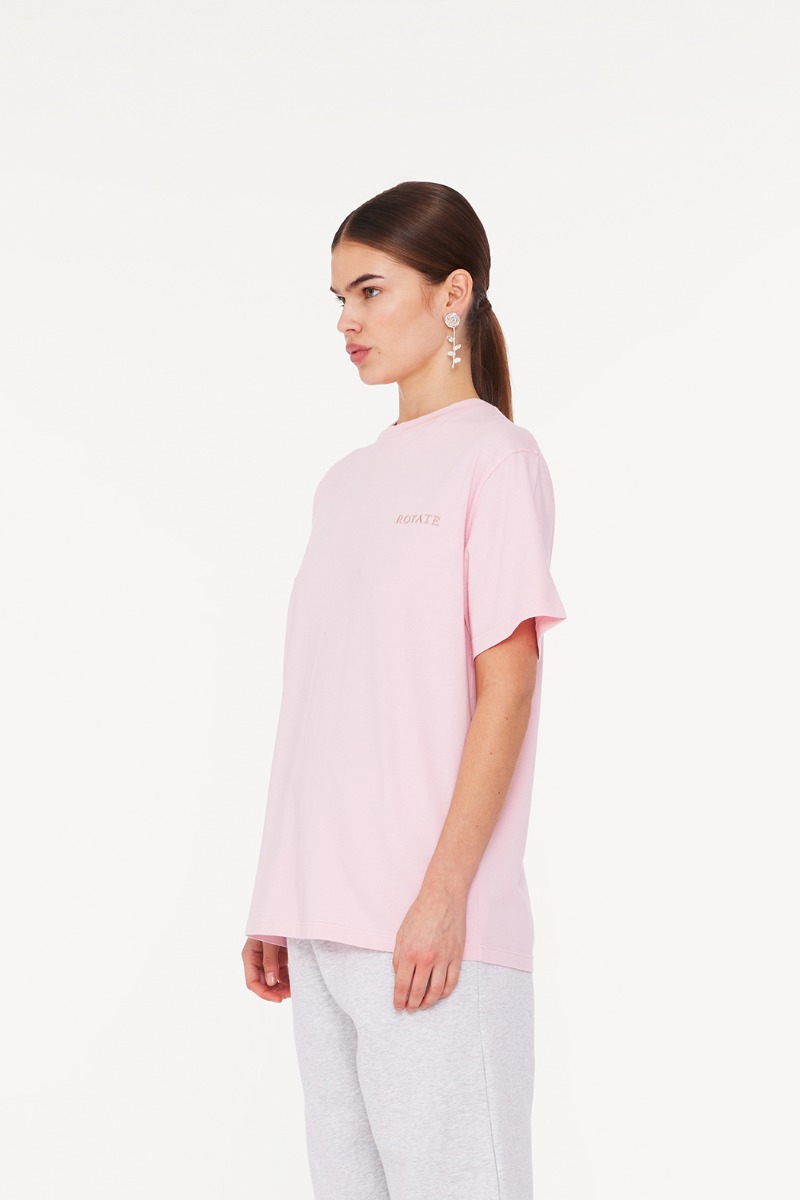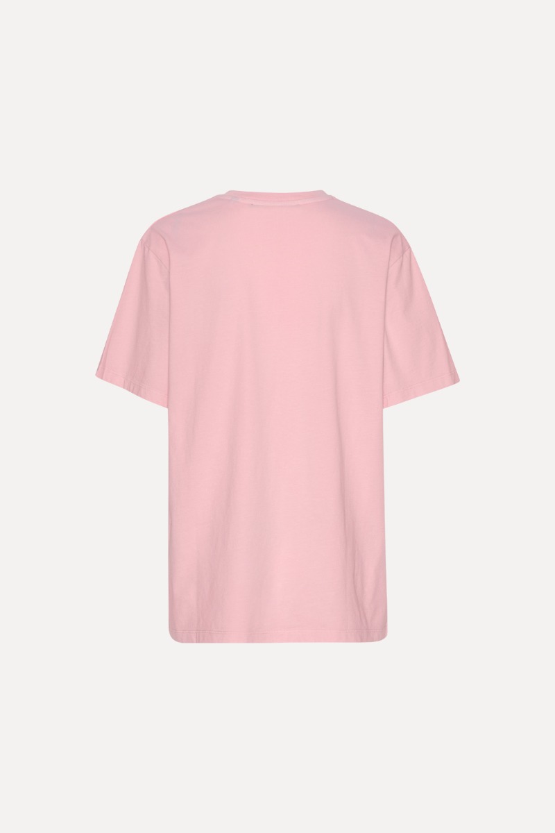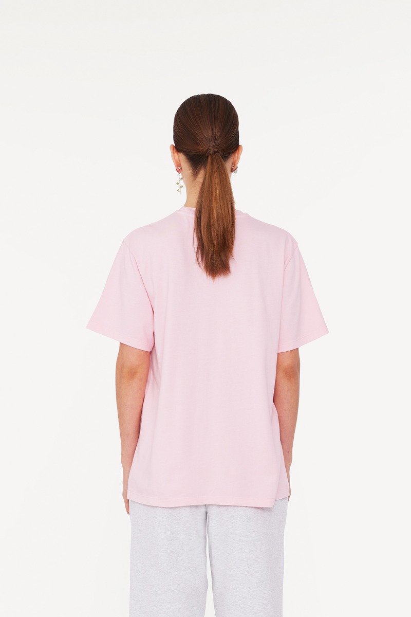 THIS OVERSIZED T-SHIRT IN A SOFT PINK HUE IS A COZY AND ECO-CONSCIOUS CHOICE, CRAFTED FROM 100% ORGANIC COTTON. ITS RELAXED FIT OFFERS ULTIMATE COMFORT, WHILE THE SUBTLE FRONT LOGO ADDS A TOUCH OF UNDERSTATED STYLE. PERFECT FOR CREATING A LAID-BACK YET THOUGHTFUL ENSEMBLE.