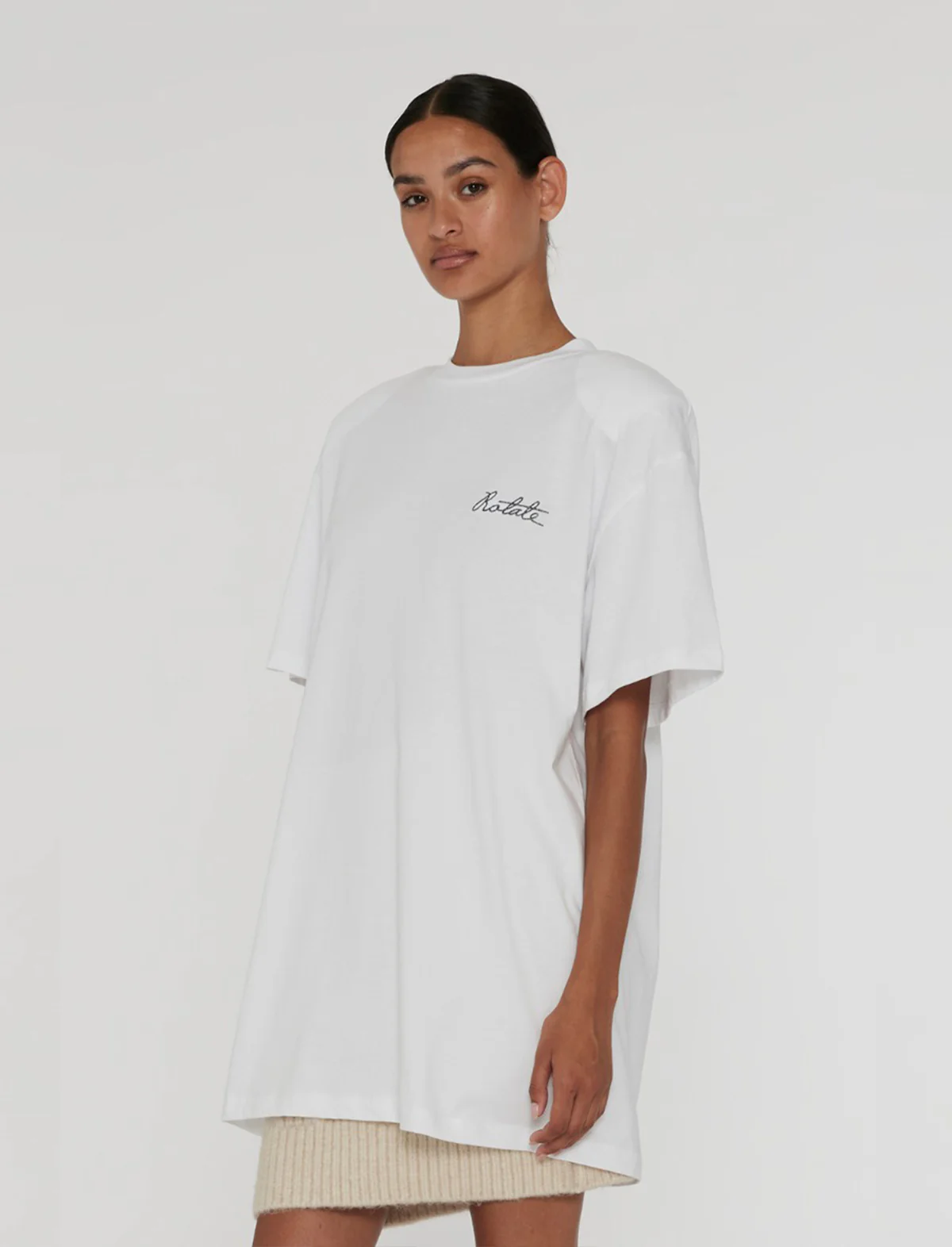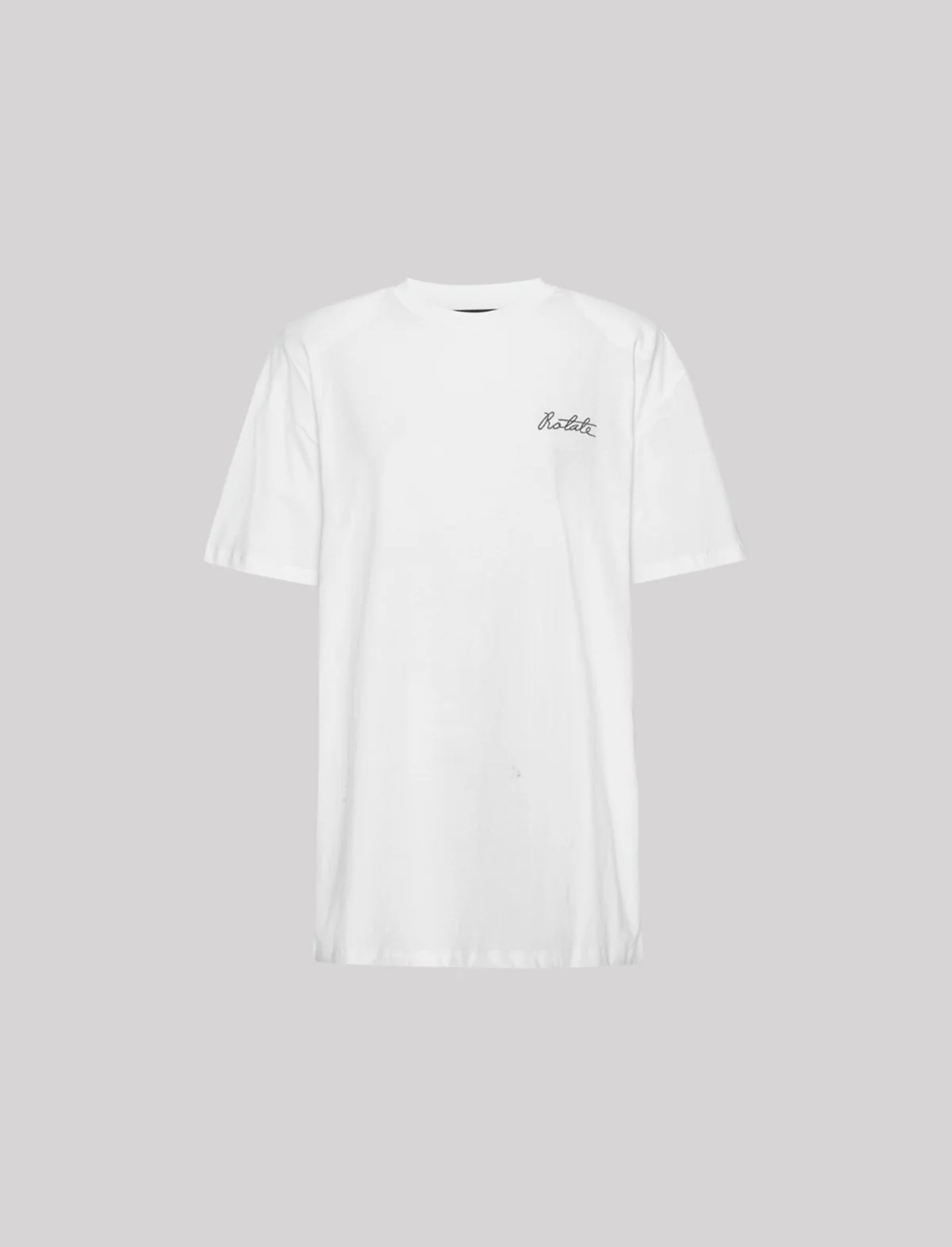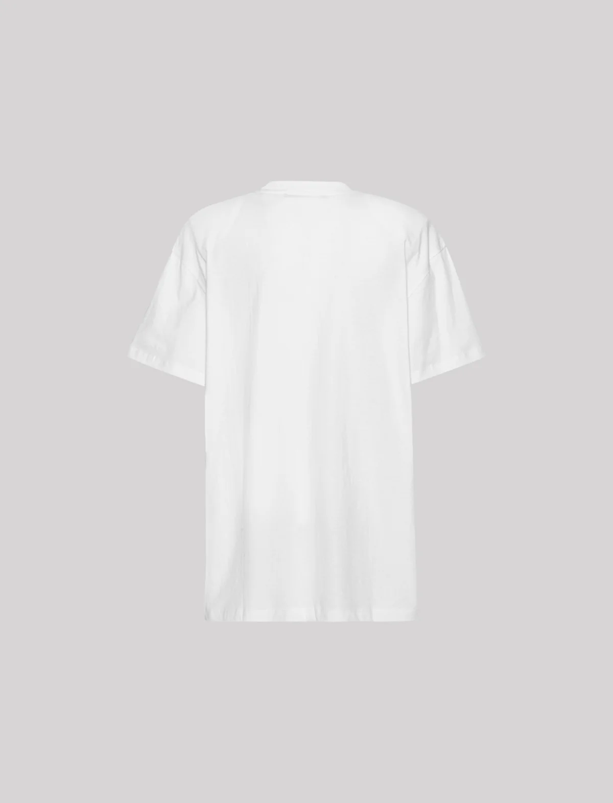 Highlights bright white organic cotton jersey texture crew neck shoulder pads drop shoulder short sleeves embroidered logo at the chest straight hem Organic Cotton 100%