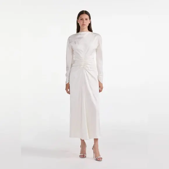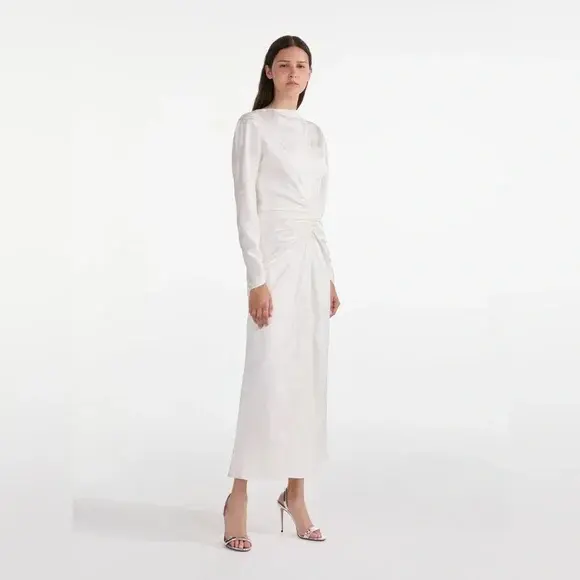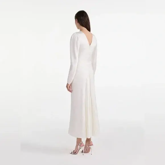Marta Blouson Midi Dress in Pearl