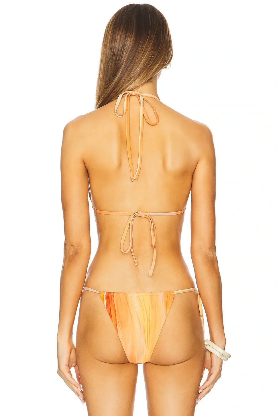 Self: 85% nylon, 15% elastane.Lining: 90% polyester, 10% elastane. Made in China. Hand wash cold. Halterneck and back ties. Unwired unpadded cups. Stretch jersey fabric with beading detail on strap.