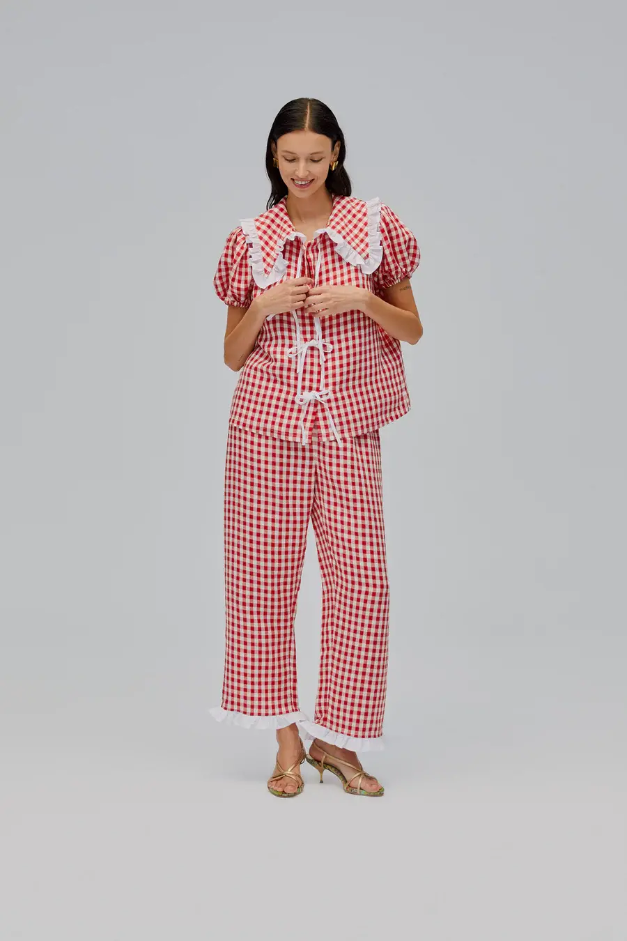 The Puff Linen Shirt in Red Vichy is the ultimate cottagecore dream, seamlessly moving from city strolls to countryside escapes. Crafted from the most luxurious, breathable linen, it features puffed sleeves, delicate collar ruffled edges, and charming bow details for a nostalgic yet modern feel. Style it with Puff Pants in Red Vichy for a head-to-toe romantic look, or mix it with timeless wardrobe staples for endless styling possibilities.