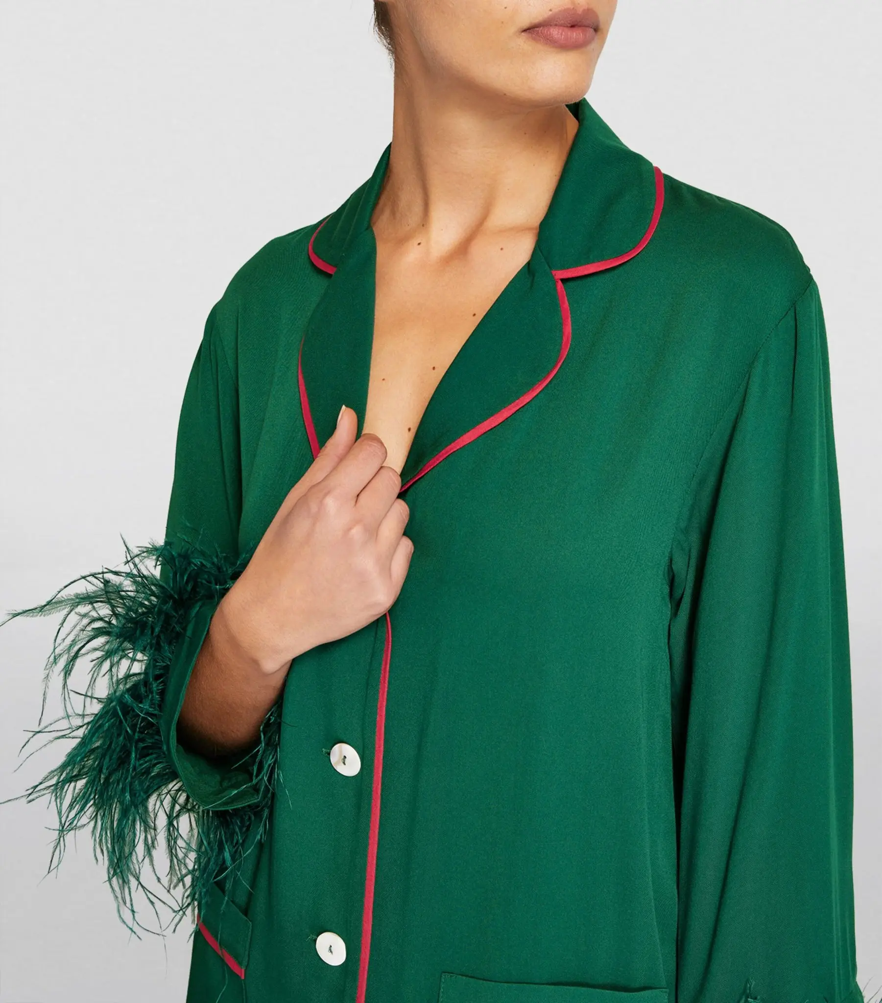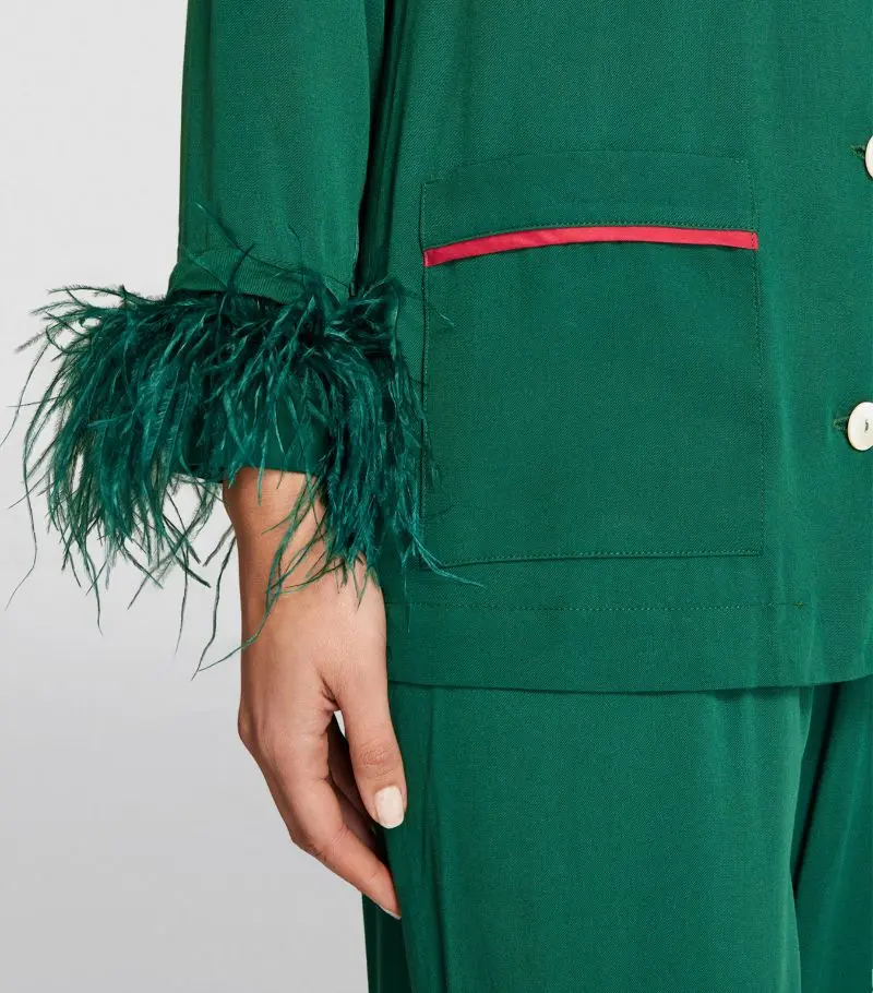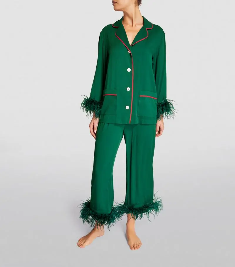 Sleeper "Party" pajama set with contrast flat piping and detachable turkey feather trim