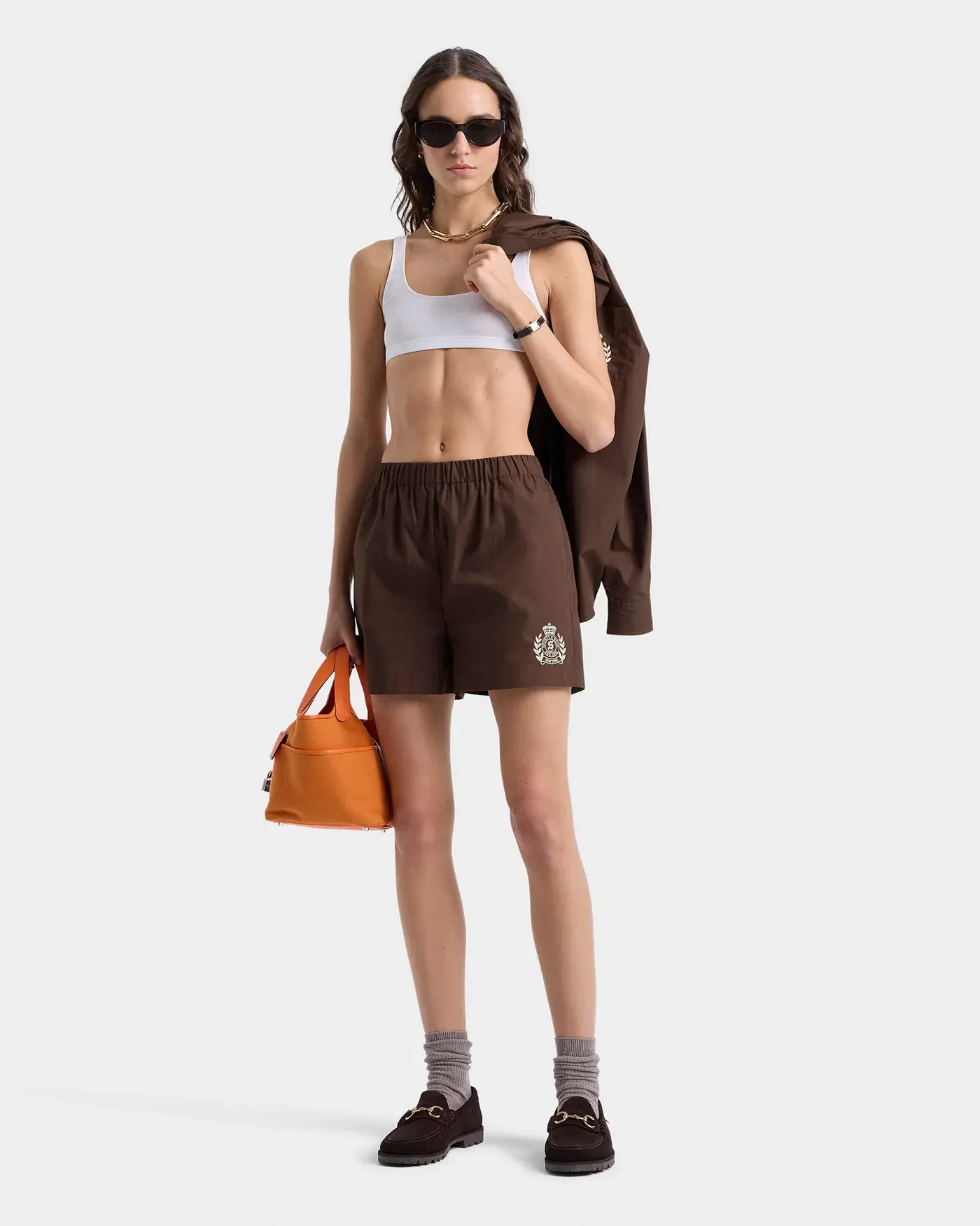 Made from 100% cotton poplin. Our poplin shorts are made in Portugal at one of the finest and oldest European shirt maker. Oversized, unisex fit with an elastic waistband.
