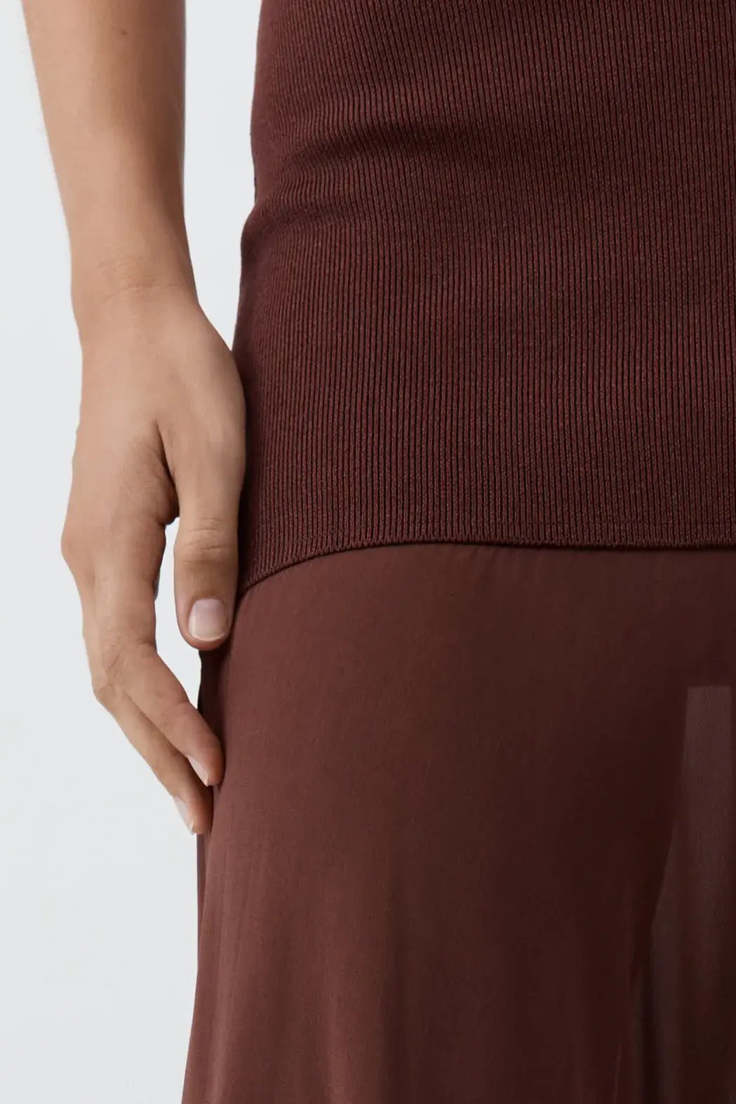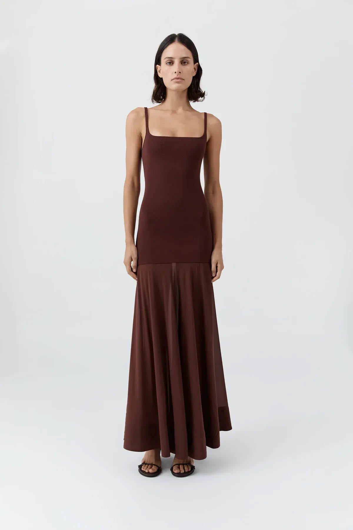 The Sheer Silk Circle Hem Dress combines structure and fluidity, featuring a fitted knit bodice that flows into a full circle silk skirt, falling gracefully to a maxi length. With a clean square neckline and lightweight feel, the Sheer Silk Circle Hem Dress a versatile design that transitions effortlessly from day to evening.