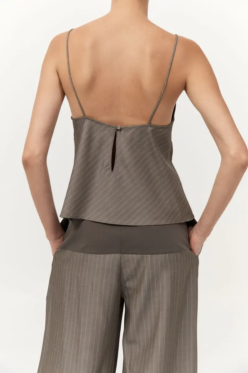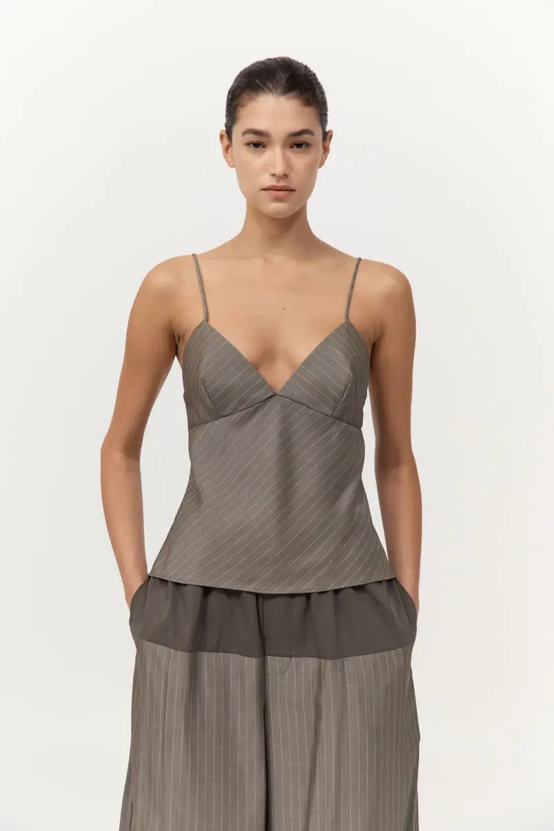 Cut on the bias for a naturally flattering drape, the Bias Cami features a V-neckline, delicate rouleau straps, bust darts and an underbust panel for subtle shaping. A center-back keyhole with button closure adds a refined touch, perfect for effortless warm-weather dressing.