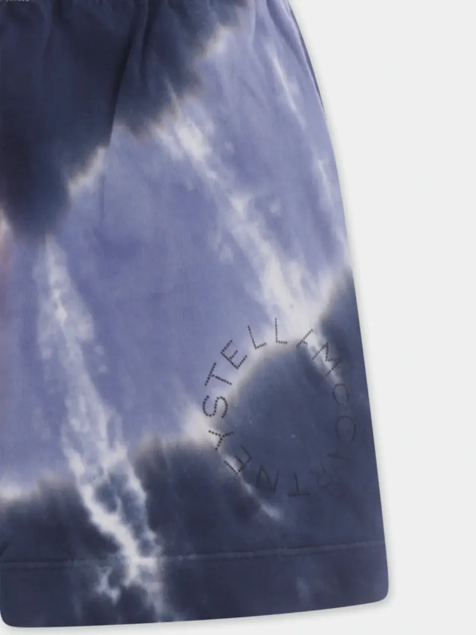 Multicolor shorts in GOTS certified organic cotton, with elastic waist and side pockets. They are embellished with a circular logo on one leg.