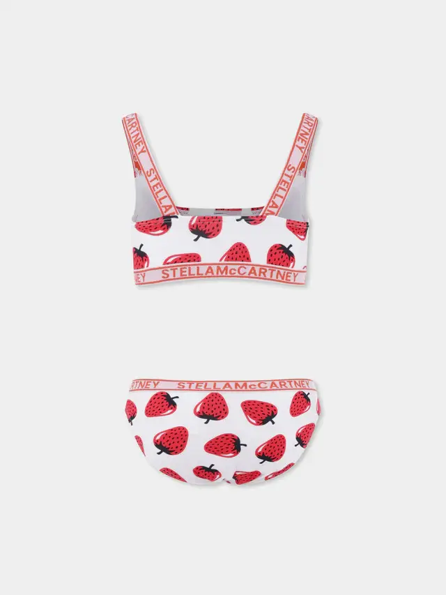 White bikini for girl with strawberry print