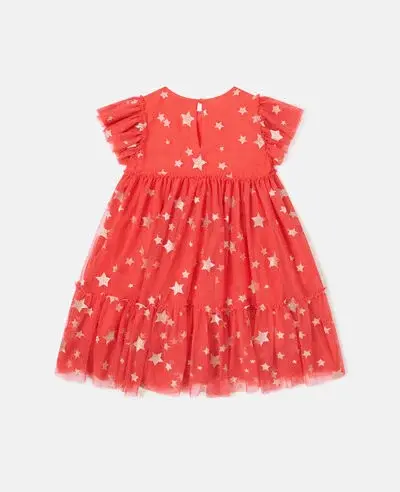 For Spring Summer 2026, Stella McCartney Kids explores notes of nature – with ladybirds, floral prints and musical characters across a collection crafted entirely from conscious materials. This dress is made from a blend of recycled fibres and textiles. Colour: Red/Multicolor Crewneck Short sleeve Pleated tulle Star embroidery Button fastening