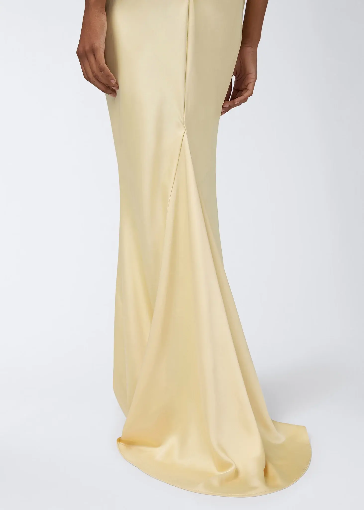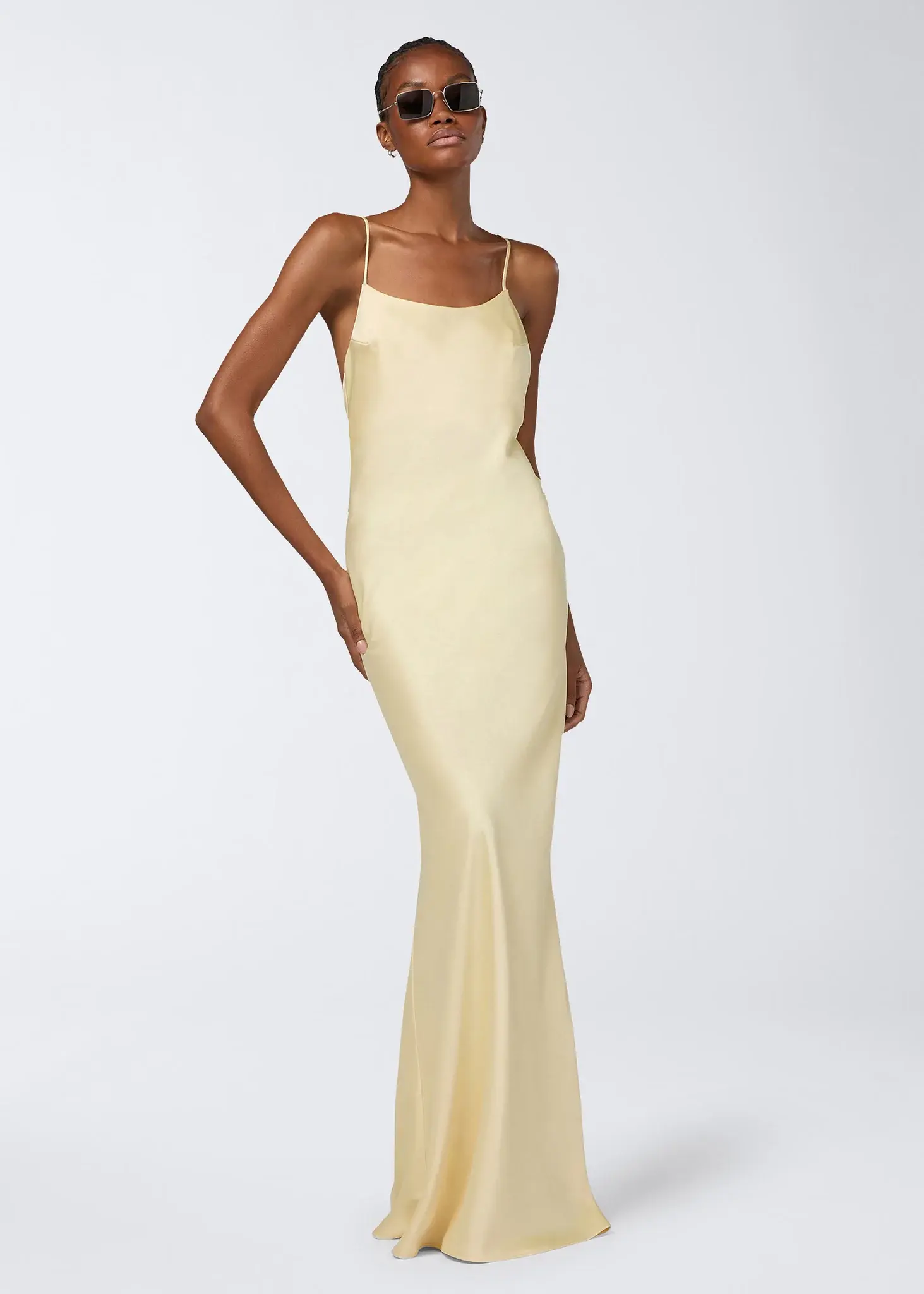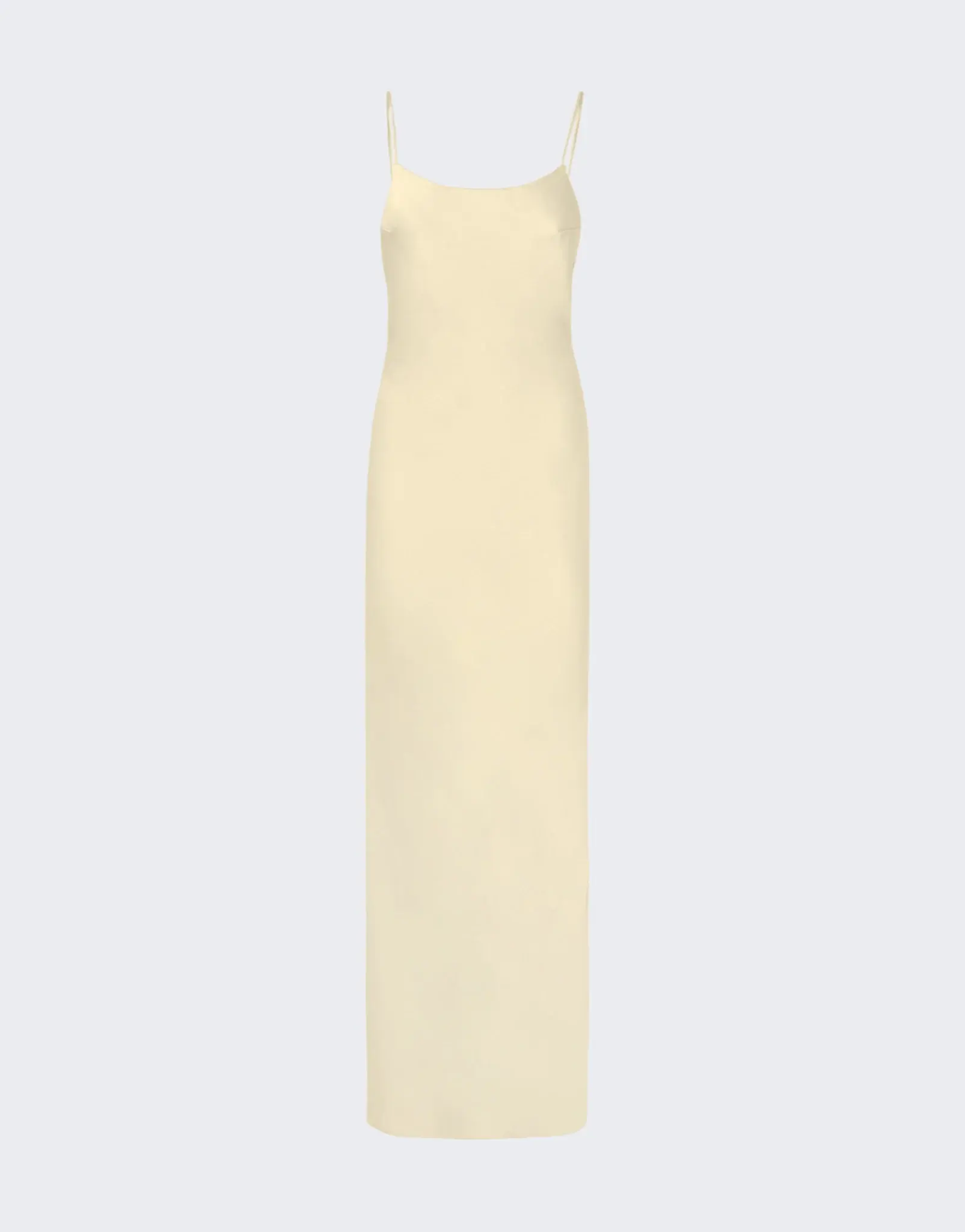 The Ninfea maxi slip dress is made from vanilla liquid satin. Crafted with thin straps and a slightly rounded neckline, the lightweight fabric creates a soft silhouette. It is tailored with ruching and a zip fastening at the back.