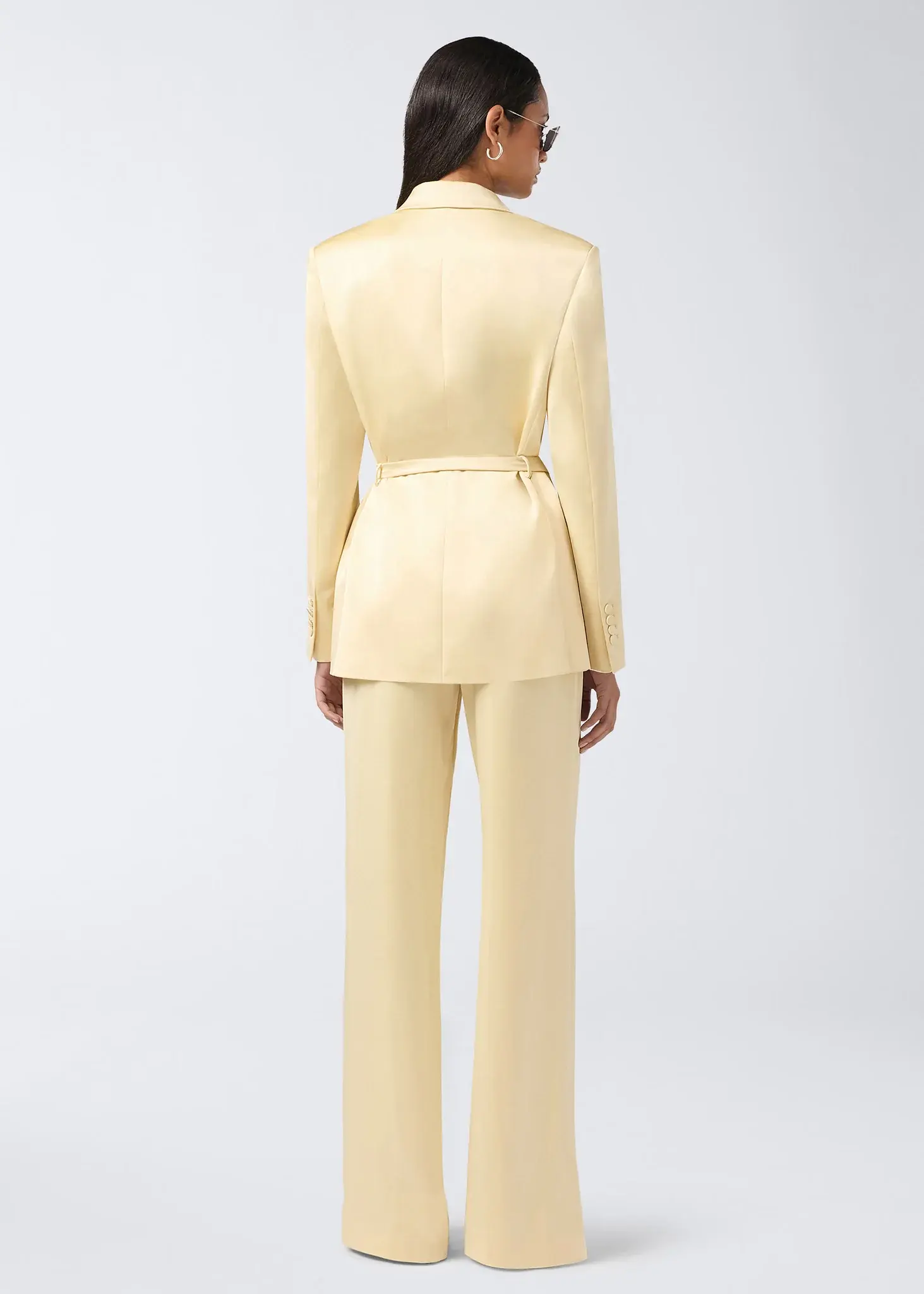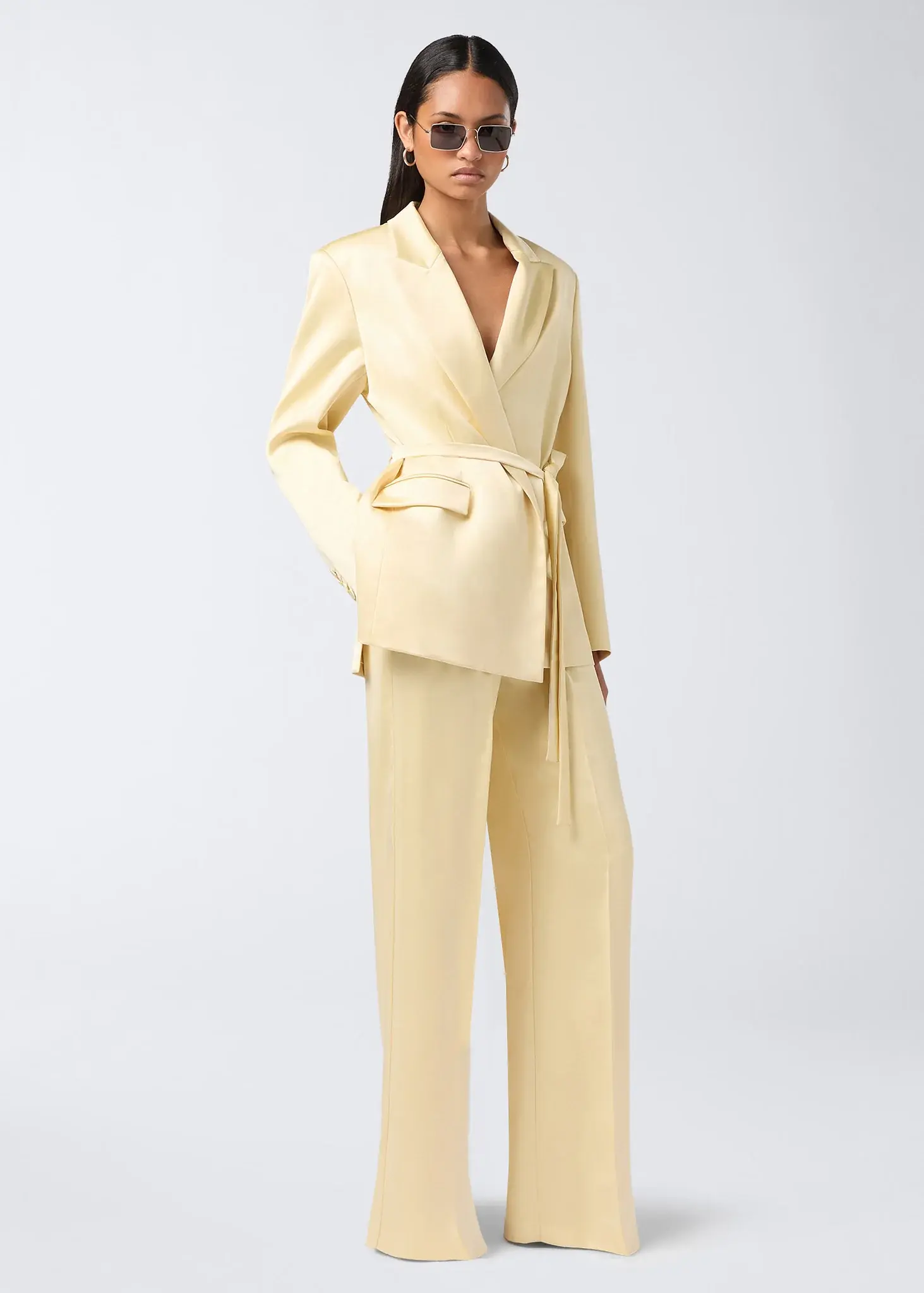 The Nathalie high-waisted pants are cut from vanilla liquid satin. These women's pants are designed with front darts to create a tailored fit. Side slit pockets, belt loops, and a sliding hook and zip fastening complete the design with a functional aesthetic. High Waisted Satin Pants
