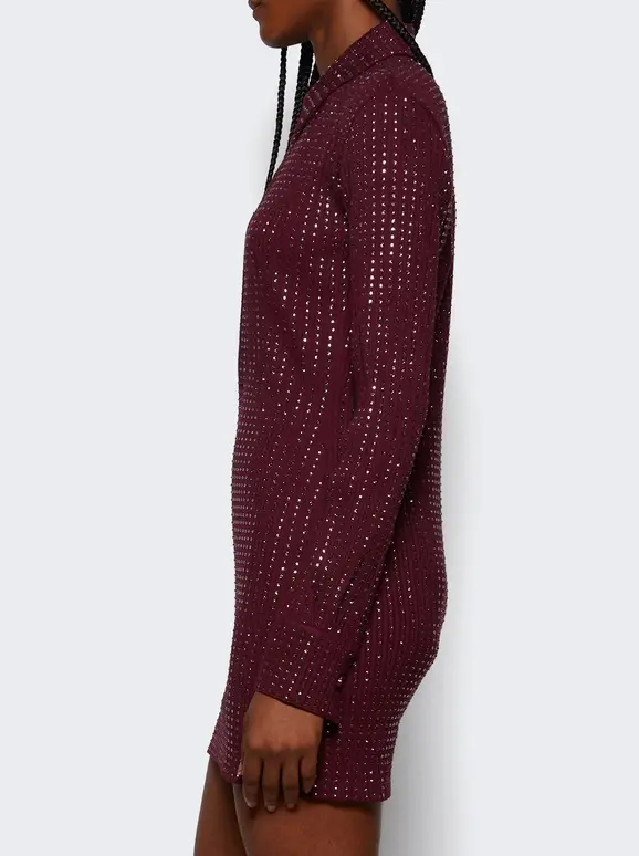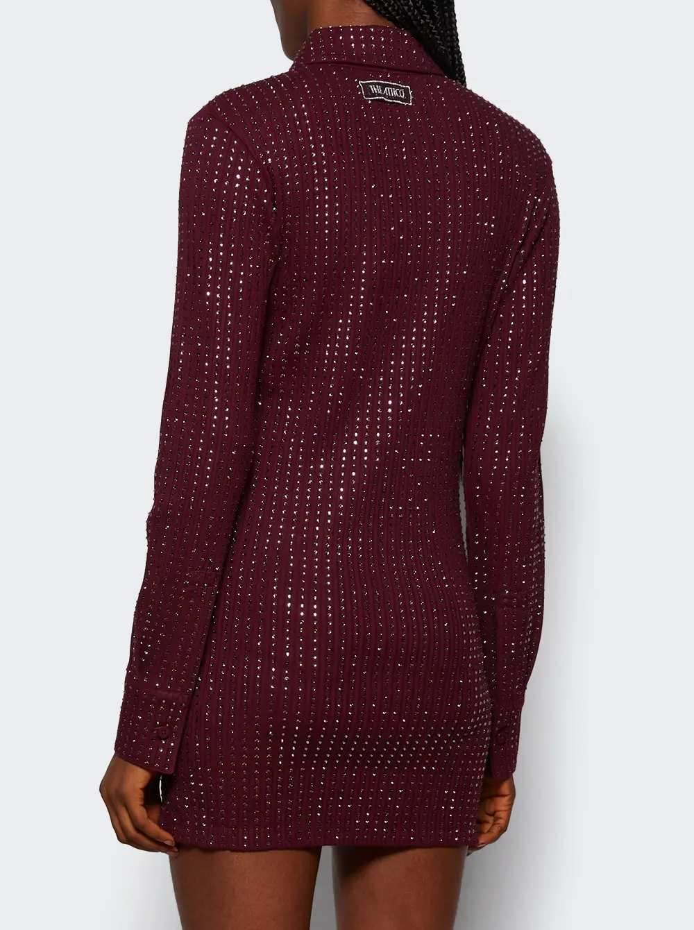 Mini length Long sleeves Crystal embellishment Collared neckline Straight hem Care according to label Material: 100% Cotton Size Information: