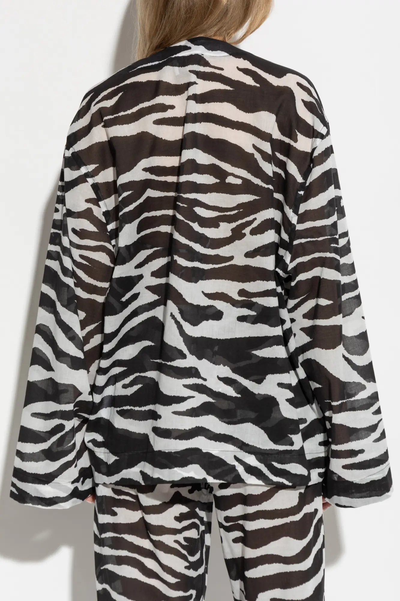 The Estate Meravigliosa collection by The Attico captivates with elegance and an unconventional style. The shirt with a loose fit is a perfect blend of comfort and sophisticated beach chic. The distinctive black-and-white stripes reminiscent of a zebra pattern add a modern touch to the shirt, while the semi-transparent, lightweight fabric ensures breathability, ideal for hot days.