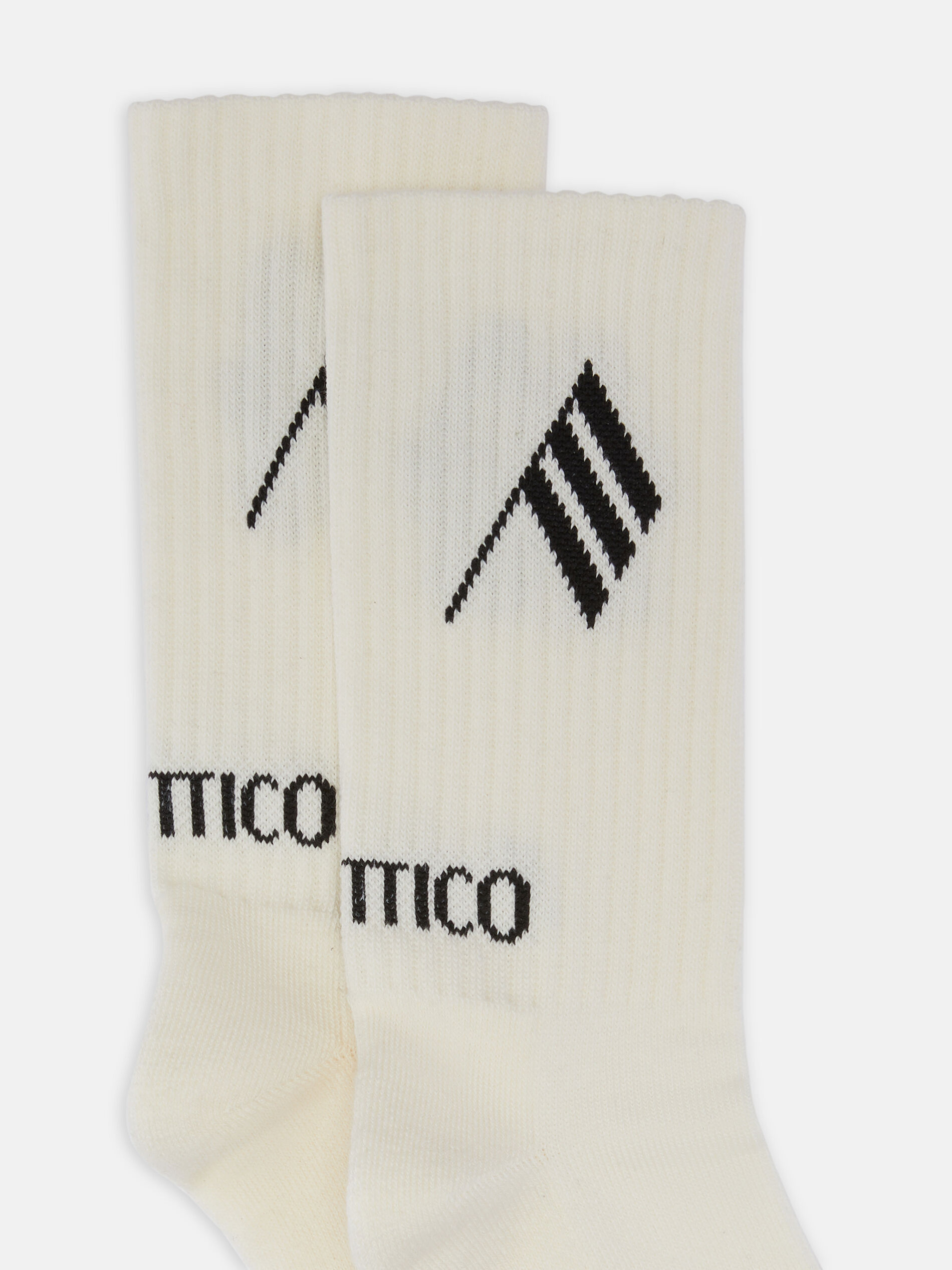 Short length socks in white cotton with black logo.