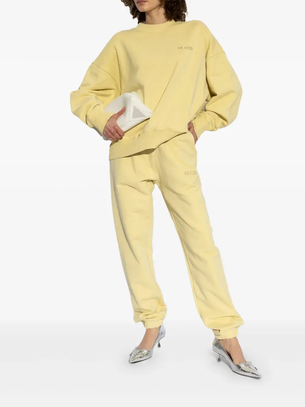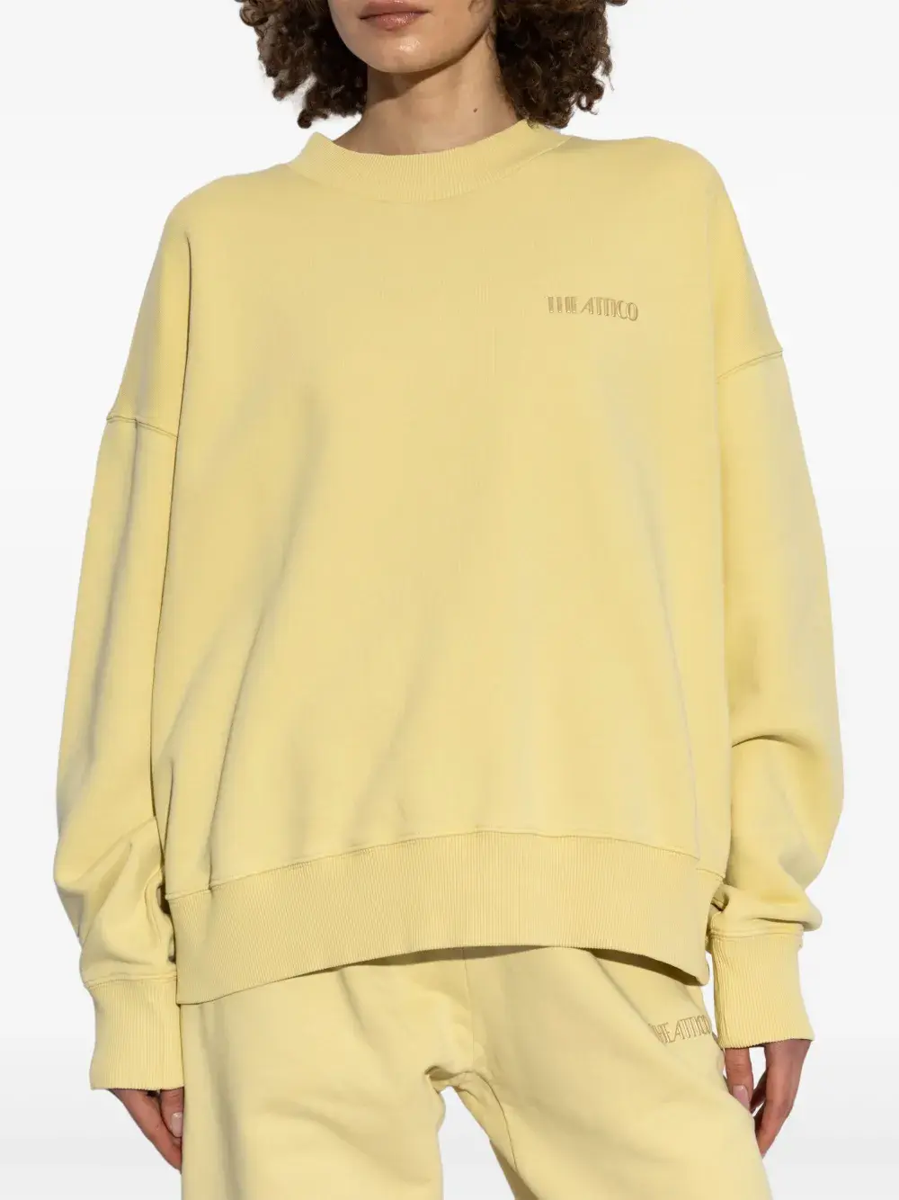 Highlights yellow crew neck long sleeves embroidered logo at the chest ribbed cuffs and hem Composition Cotton 100%
