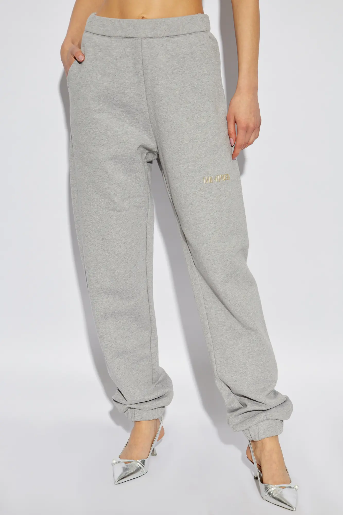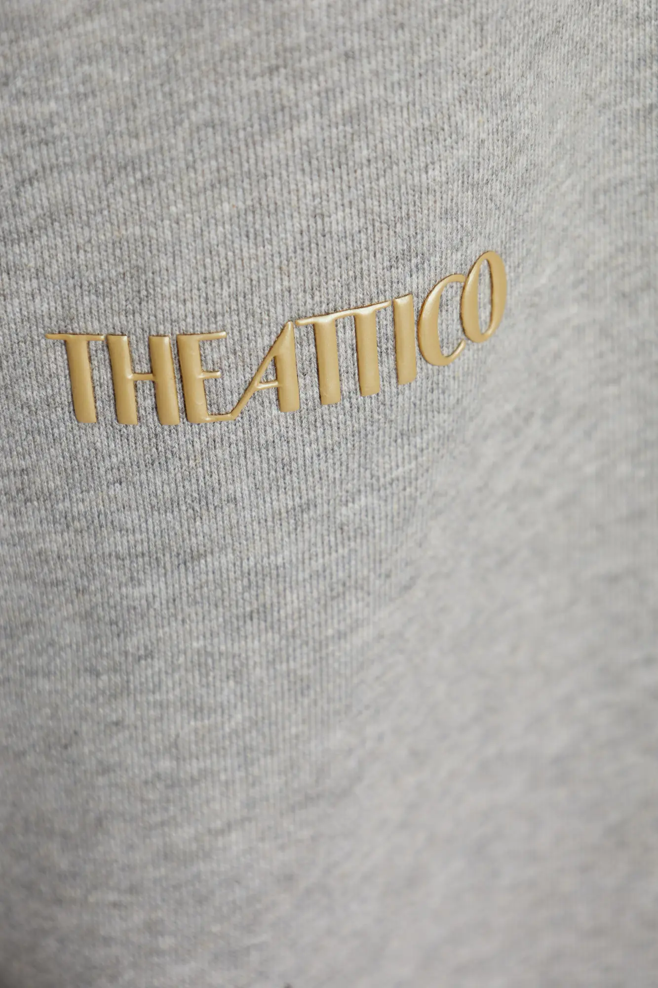 Their dominant gray color combined with a loose fit and elastic waistband creates a harmonious whole that highlights the sporty character. The subtle, gold brand logo on one of the legs adds a unique charm and recognizability.