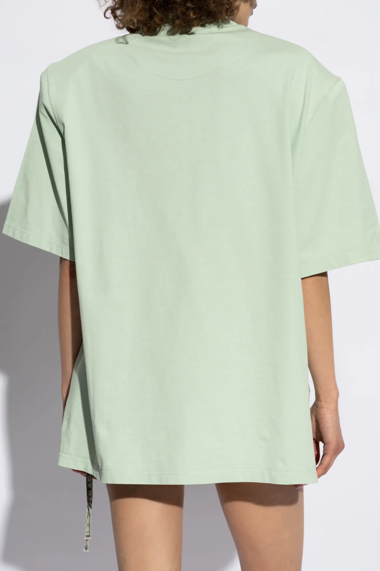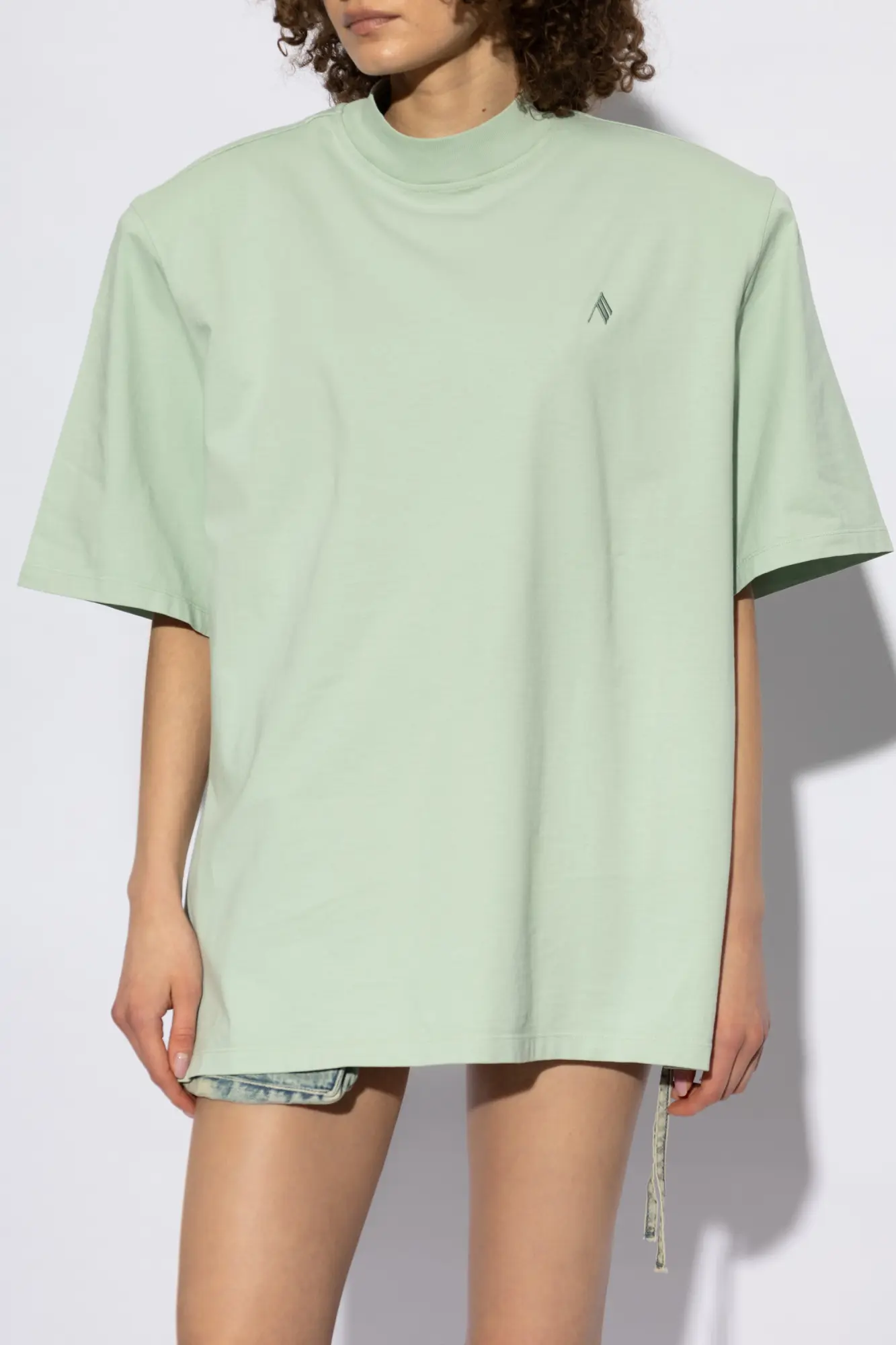 This oversized cut with short sleeves combines modernity with minimalism, making it the perfect addition to the wardrobe of any bold woman. The classic, round neckline and subtle logo in the shape of a stylized letter A on the chest highlight the unique character of the product.