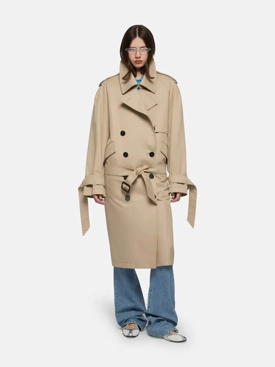 Trench in beige cotton gabardine wr. Made in Italy.
