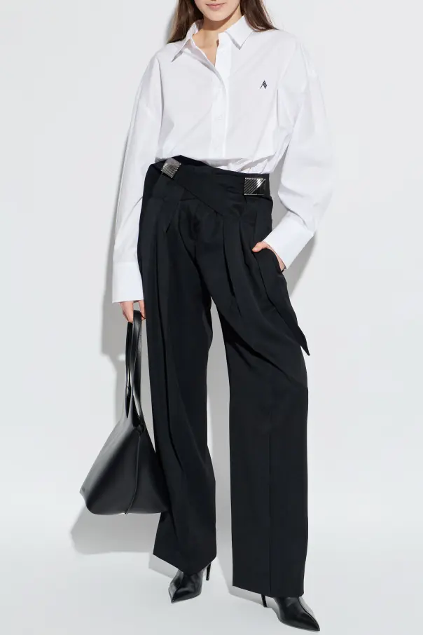 Wool trousers by The Attico represent the quintessence of refined elegance and modern design. Their wide, loose wide-leg fit with a high waist subtly accentuates the silhouette, adding lightness and verticality. The perfectly tailored wool fabric with a smooth finish highlights the exclusive character of the model and ensures exceptional wearing comfort.