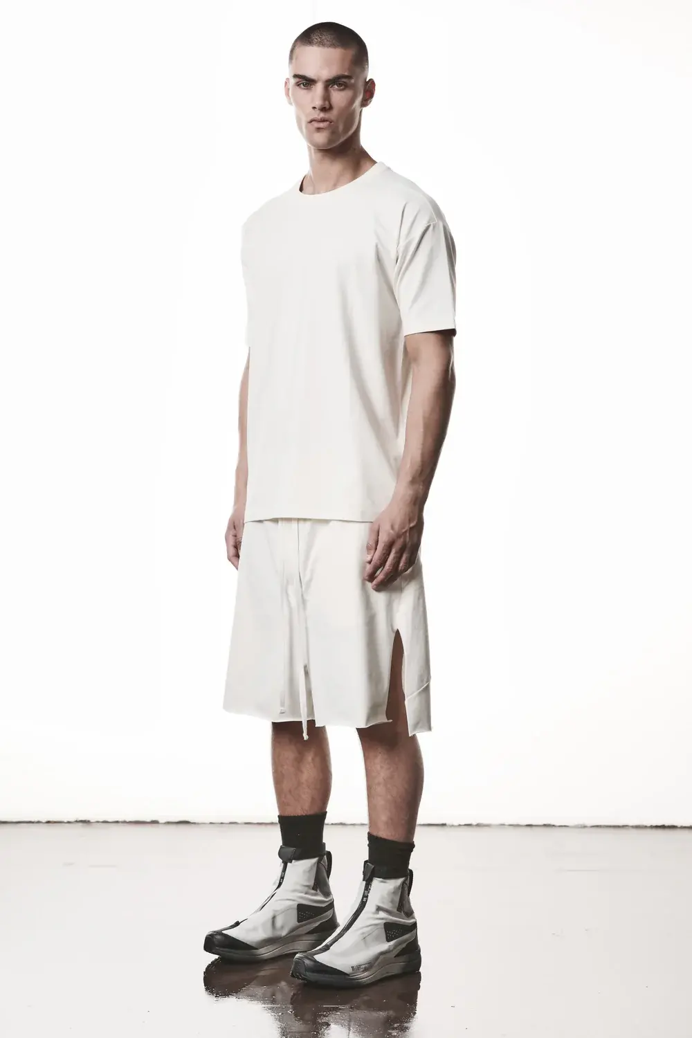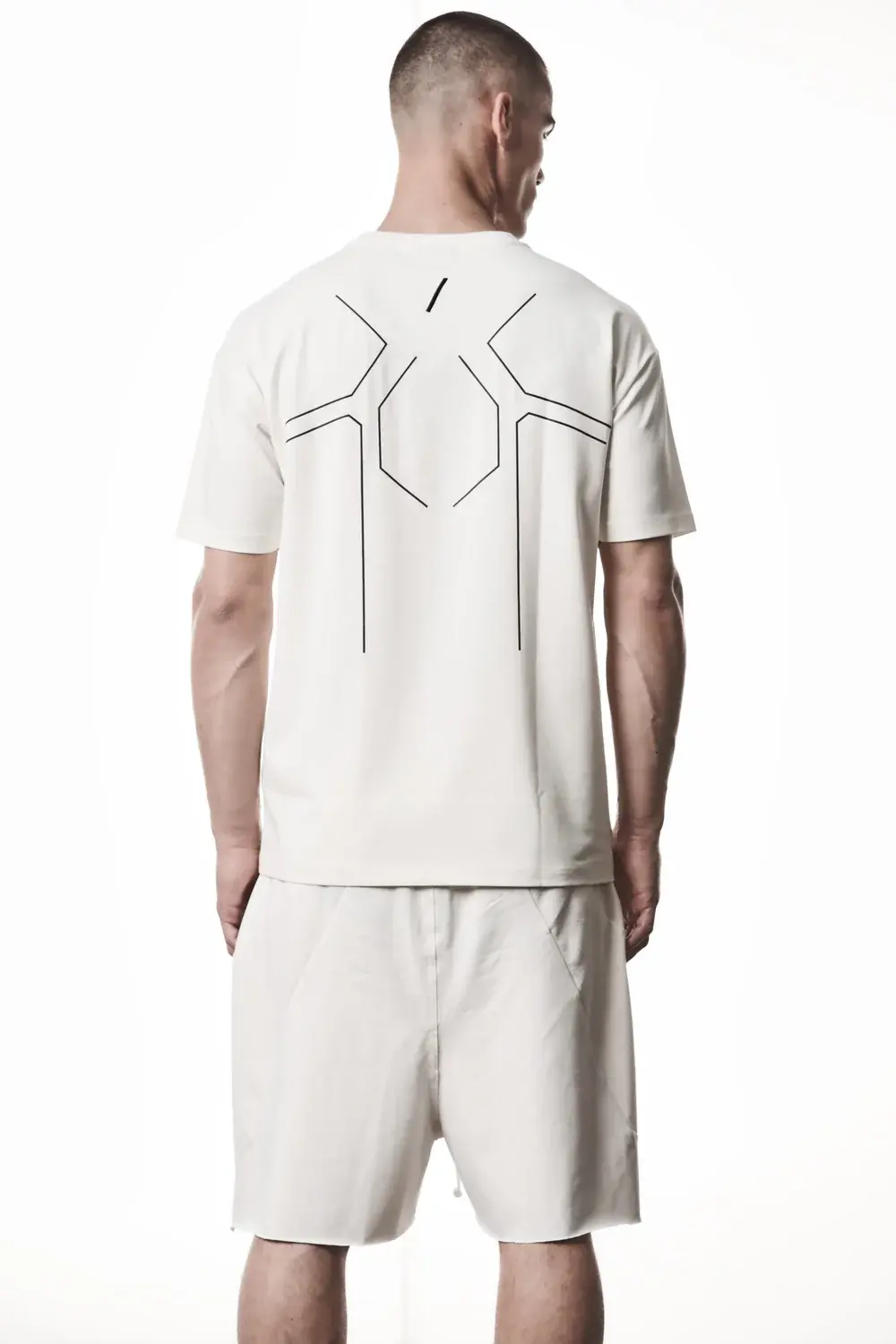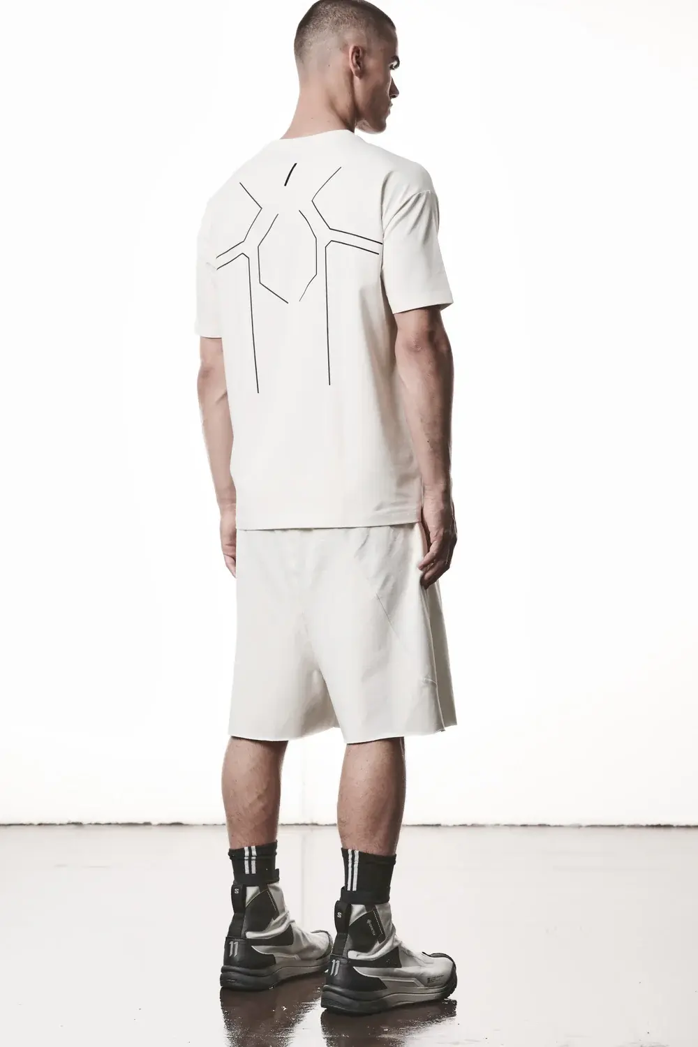 printed round neck T shirt loose fit 'slash' logo stitching reflective print at backside cotton jersey