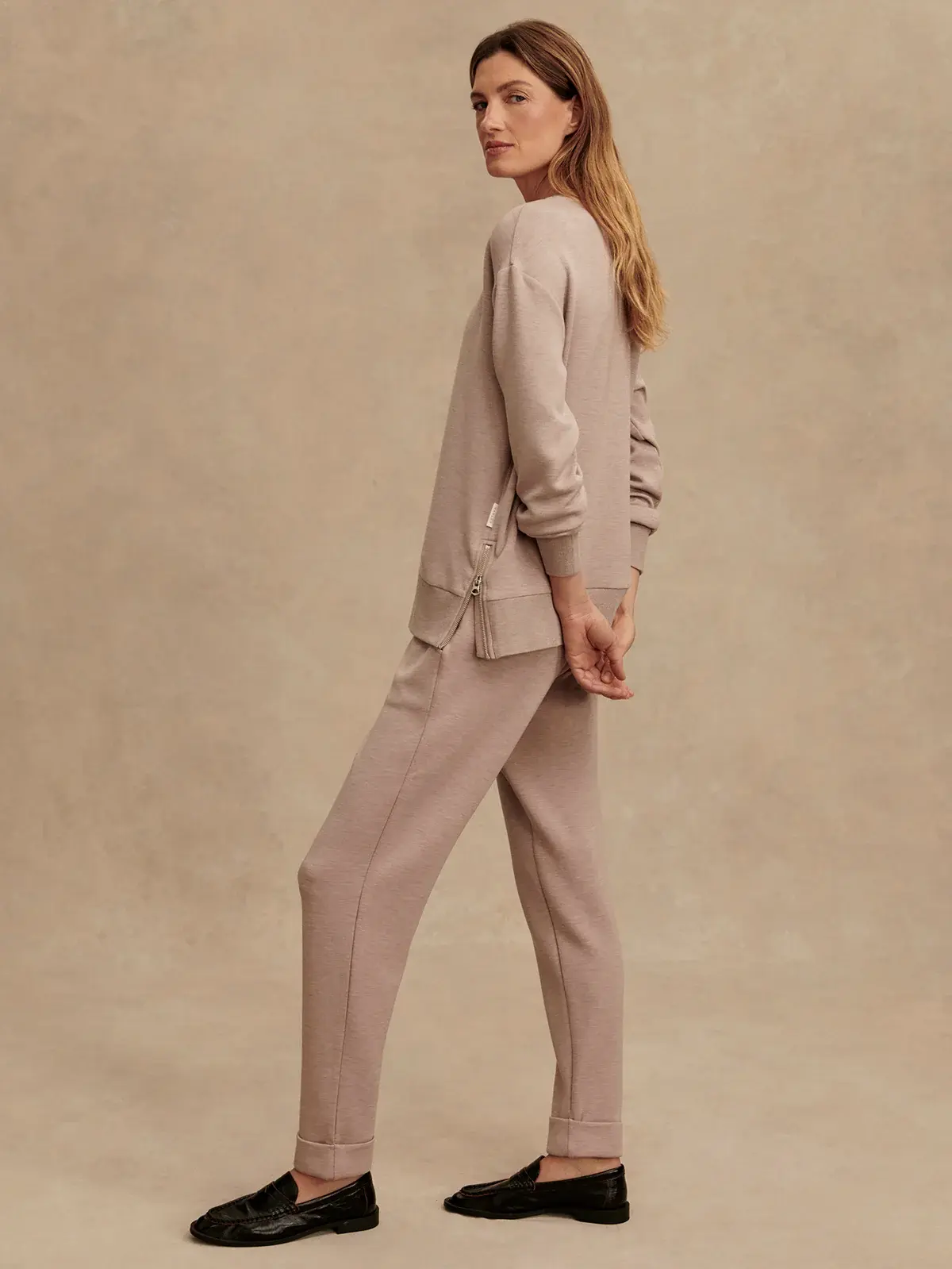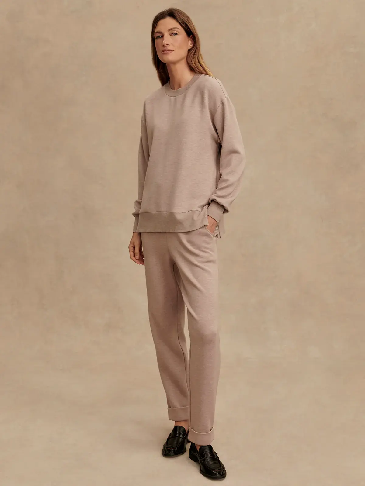 Cut to a mid-length with a classic crew neck, this relaxed fit sweatshirt features side zips and ribbed trims to lock in warmth. Made with DoubleSoft® fabric, it's super soft, lightweight, and perfect for layering.