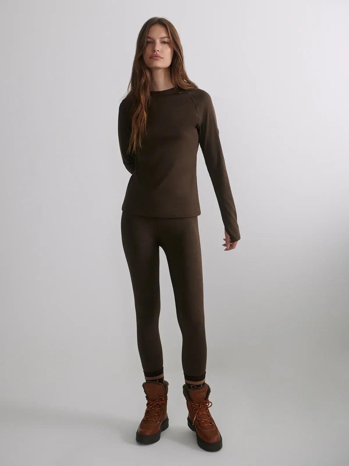 Made in super soft marled jersey with four-way stretch, these insulating leggings provide warmth and flexibility. With a high, rolled waistband for a smoothing effect, they are the perfect choice for any lifestyle.