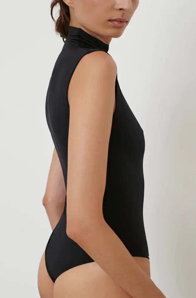 A sleeveless evolution of the best-selling RHW Bodysuit, designed for versatile layering. Cut in a luxurious Italian jersey, featuring a high neck, pintuck detail, and high-cut leg opening with adjustable snap closures. Perfectly paired with the RHW Blazer Dress and RHW Sculpted Skirt Mini or RHW Trouser.