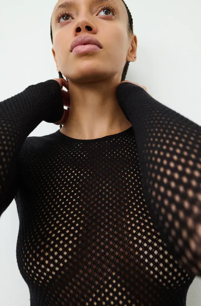 The RHW Web Bodysuit features an advanced, technical knit that is unique to the collection. The bodysuit is seamless, and unlined with adjustable snap closures. Designed to wear under the RHW Blazer Dress, or paired back with the RHW Sculpted Skirt or Trouser.