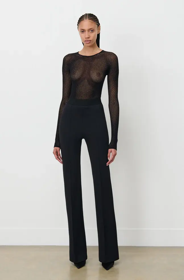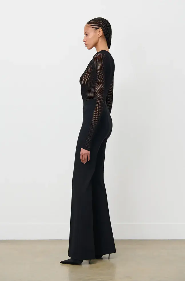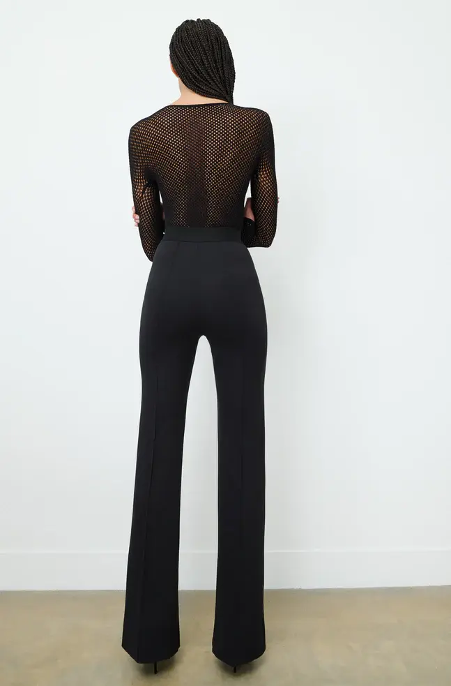 The RHW Stretch Trouser is an essential evolution of our signature legging. Cut in a technical Italian stretch fabric, with elongating leg flared toward the hem, pintuck details at front and back, and an exposed elastic waistband. Style with the RHW Blazer Dress to create a complete look for evening, or the RHW Sweater and Anorak for elevated daywear.