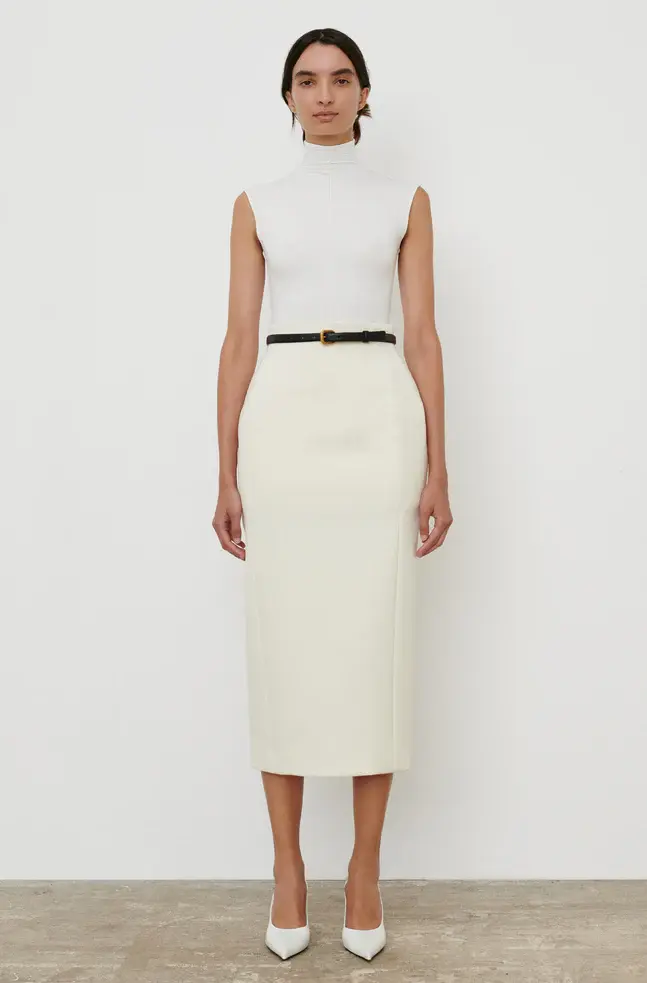 The RHW Sculpted Skirt introduces a pronounced, and elegant form to enhance the wearer’s natural shape. Crafted in a technical Italian wool blend, the Skirt is elongating with precisely engineered darts, and a back vent for movement. Style with the RHW Short Sleeve Bodysuit and RHW Sweater. Available in Midi or Mini Lengths.