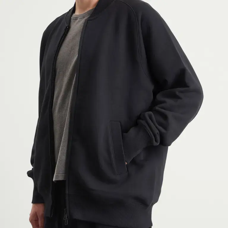 Oversized fit Two-way full zip with ribbed collar 100% cotton Side pockets Ribbed cuffs and hem Stacked logo graphic Product colour: Black