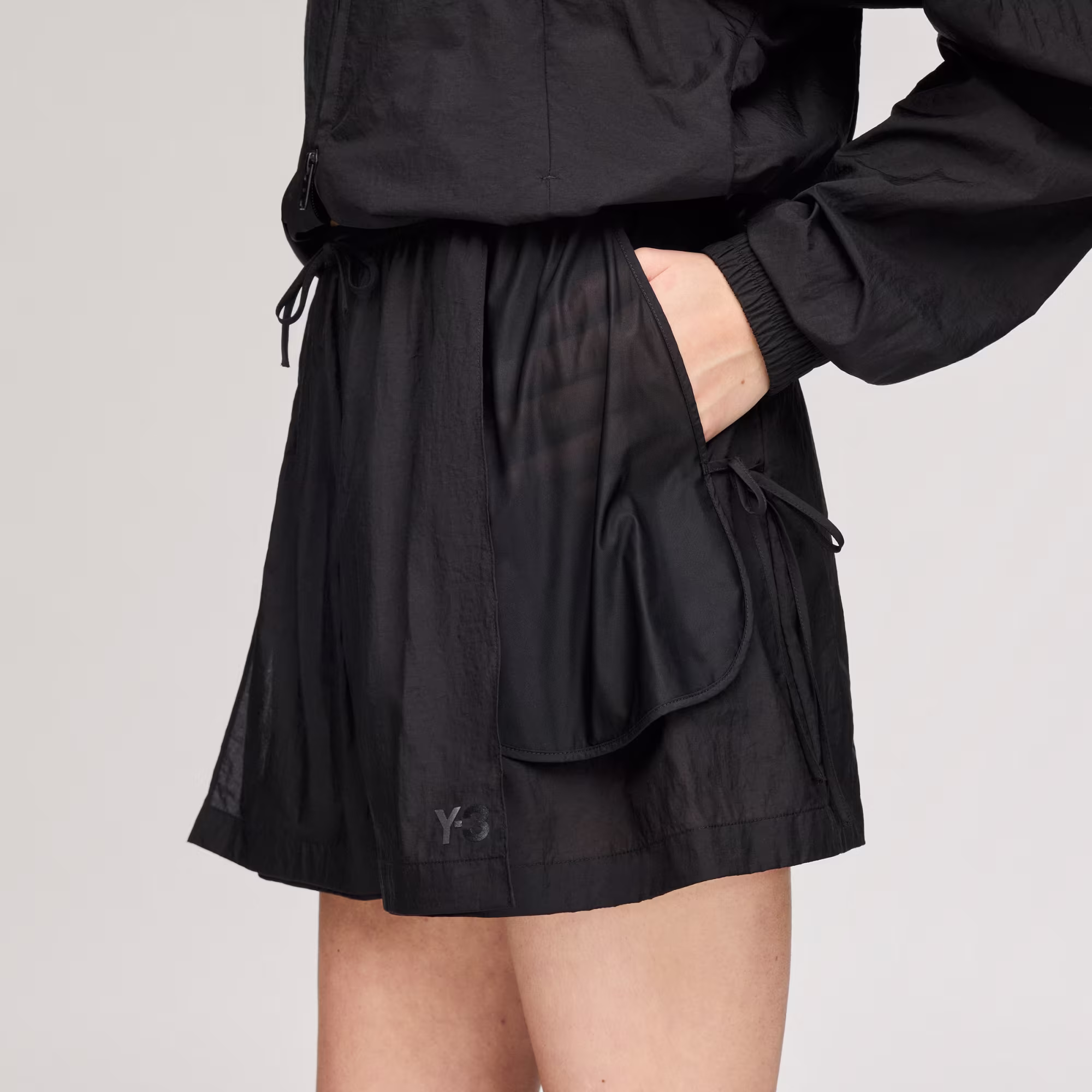 Slim fit Fully elasticized waistband 100% PA6 Performance woven fabric Centered back welt zipper pocket Reflective Y-3 signature Imported