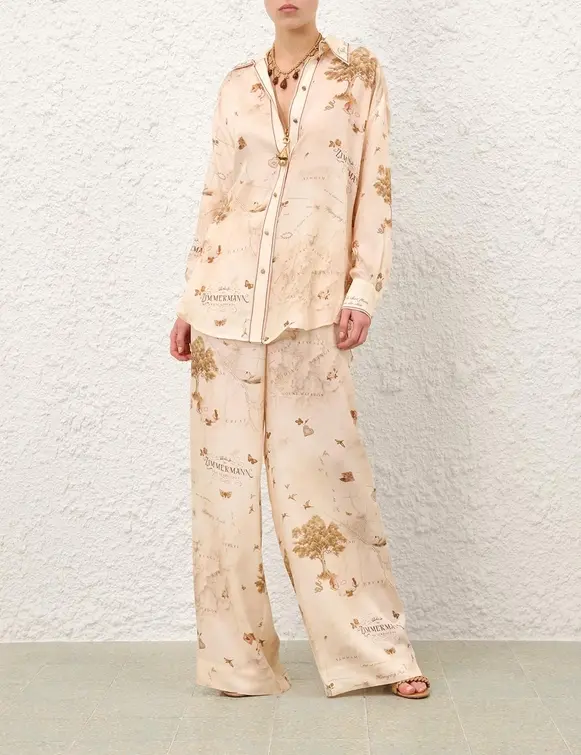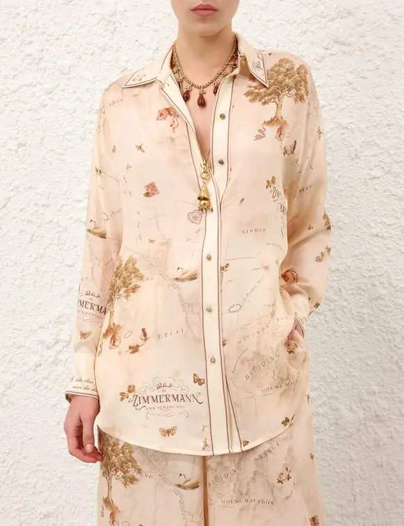 The Relaxed Shirt in Map Print from our Fall 2025 Collection, Hypnotic. A relaxed fit shirt featuring long sleeves, a classic collar and buttons down the centre front. Cupro long sleeve shirt Functional buttons down the centre front placket Side splits Fitted, buttoned cuffs Placement printed
