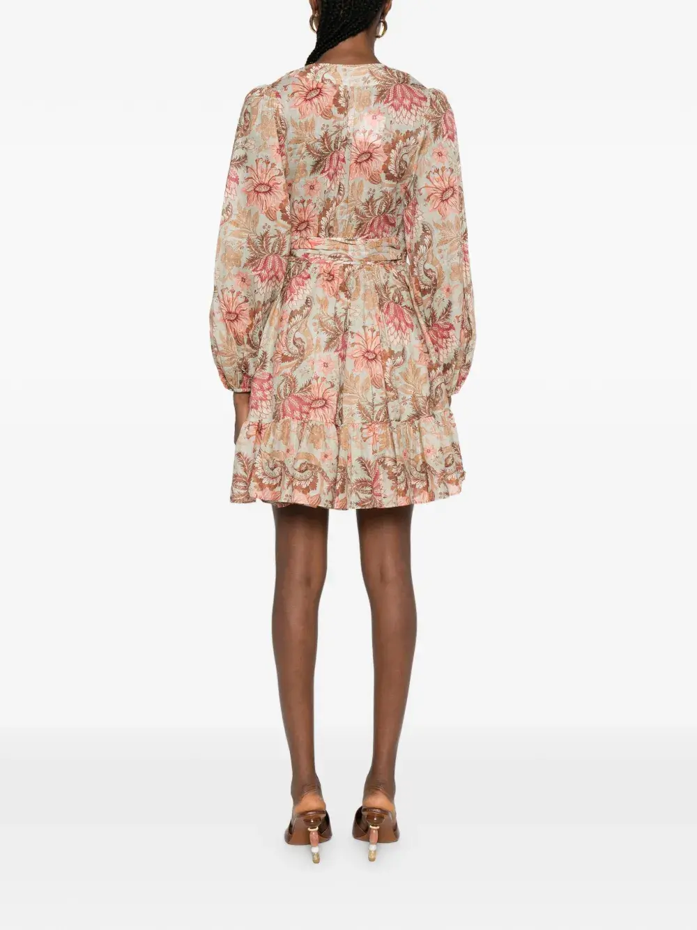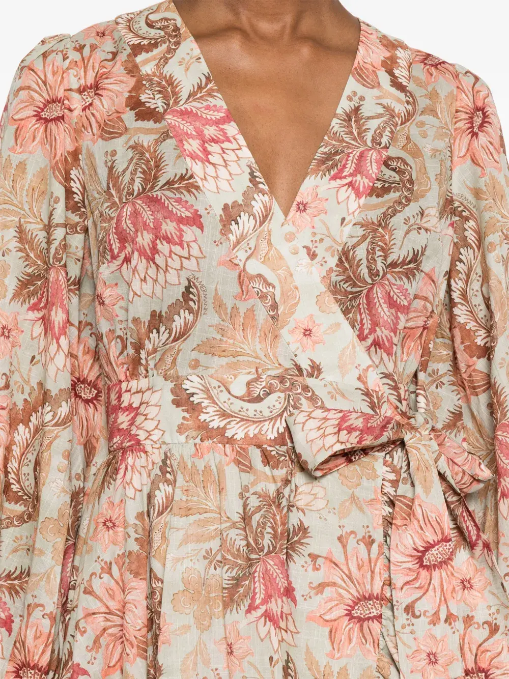 Highlights cream floral print wrap style frill trim tie fastening V-neck Composition Outer: Cotton 100%