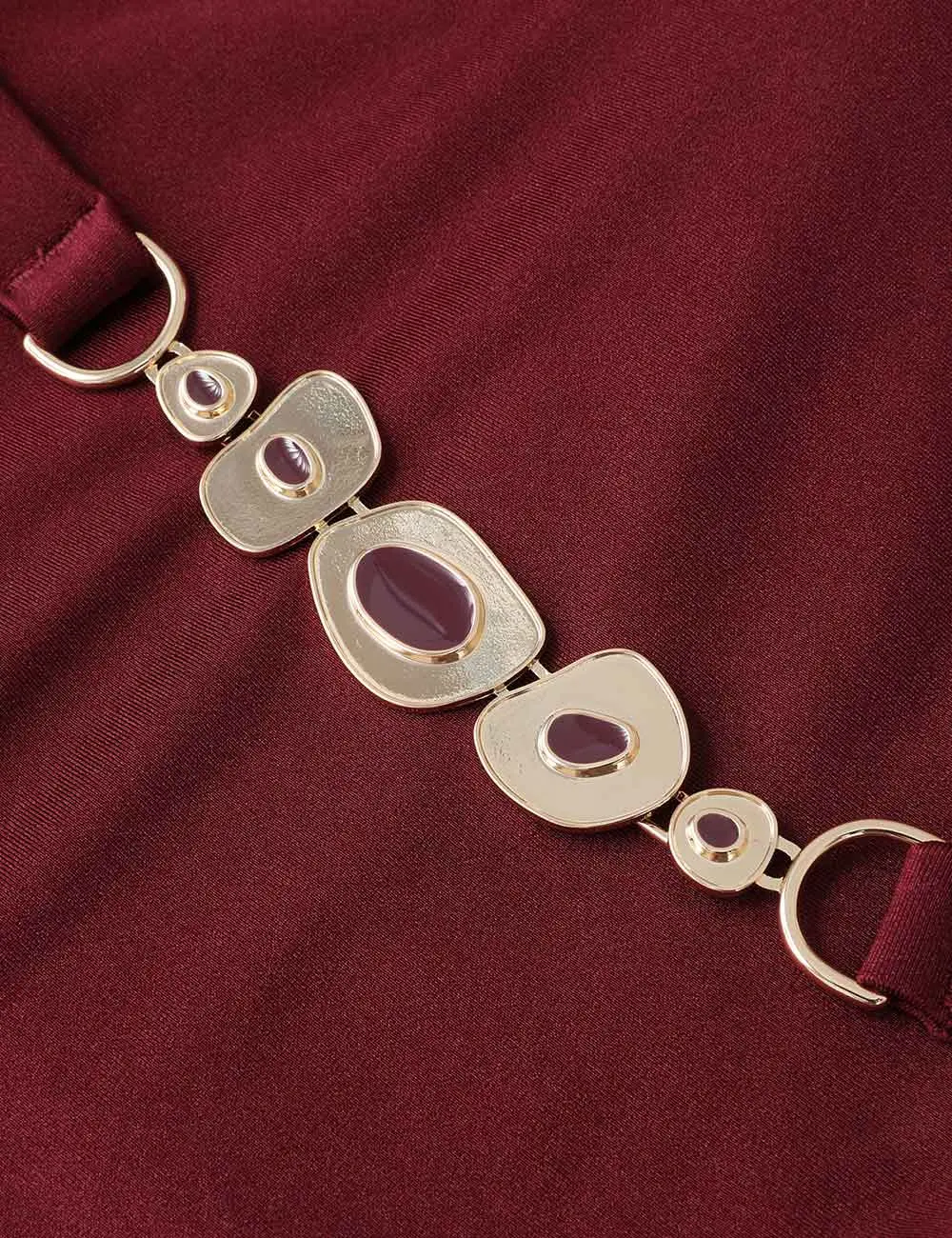 The Awaken Belted Scoop 1PC in Burgundy from our Resort Swim 2026 Collection. A shiny one piece featuring a scoop neckline, removable belt and an open back design. One piece with shiny finish Scoop neckline without cups Adjustable straps Removable belt with hardware detailing Exposed back below shoulder blade Medium coverage bottoms