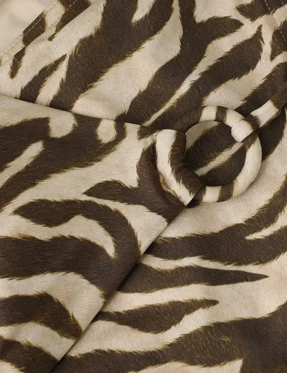 The Wanderlust Ring-Tie Bikini in Zebra from our Resort Swim 2026 Collection. A triangle bikini top and low-rise, skinny pant featuring rings throughout and self-tie straps with toggle ends. Bikini set with metallic finish Triangle top with removable soft cups Low-rise skinny pant Rings attached to self-tie straps Lined