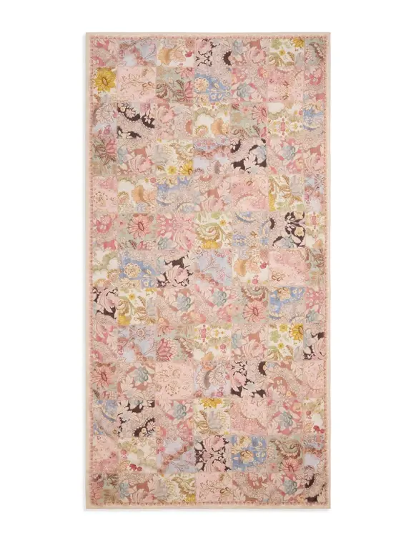 The Printed Cotton Pareo in Patch Multi from our Resort Swim 2026 Collection. A large rectangle cotton pareo featuring frayed edges and a placement print throughout. 100% cotton fabric Rectangle pareo Customised placement print Frayed edges