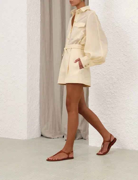 The Crush Linen Tuck Short from our Resort 2025 Collection, Crush. A linen high waisted short featuring side seam pockets and a removable belt. Linen short High waisted with removable belt Side seam pockets Tucks throughout Welt pockets on back Invisible zip at centre backZ