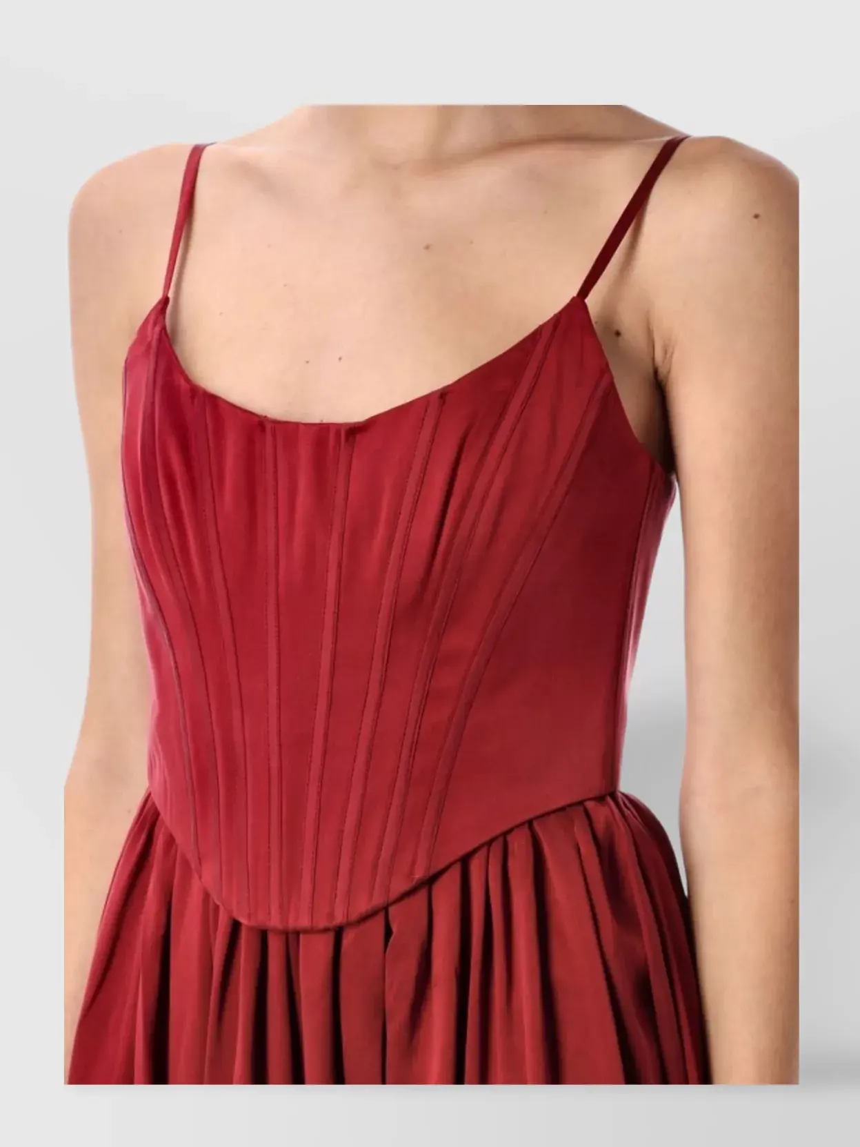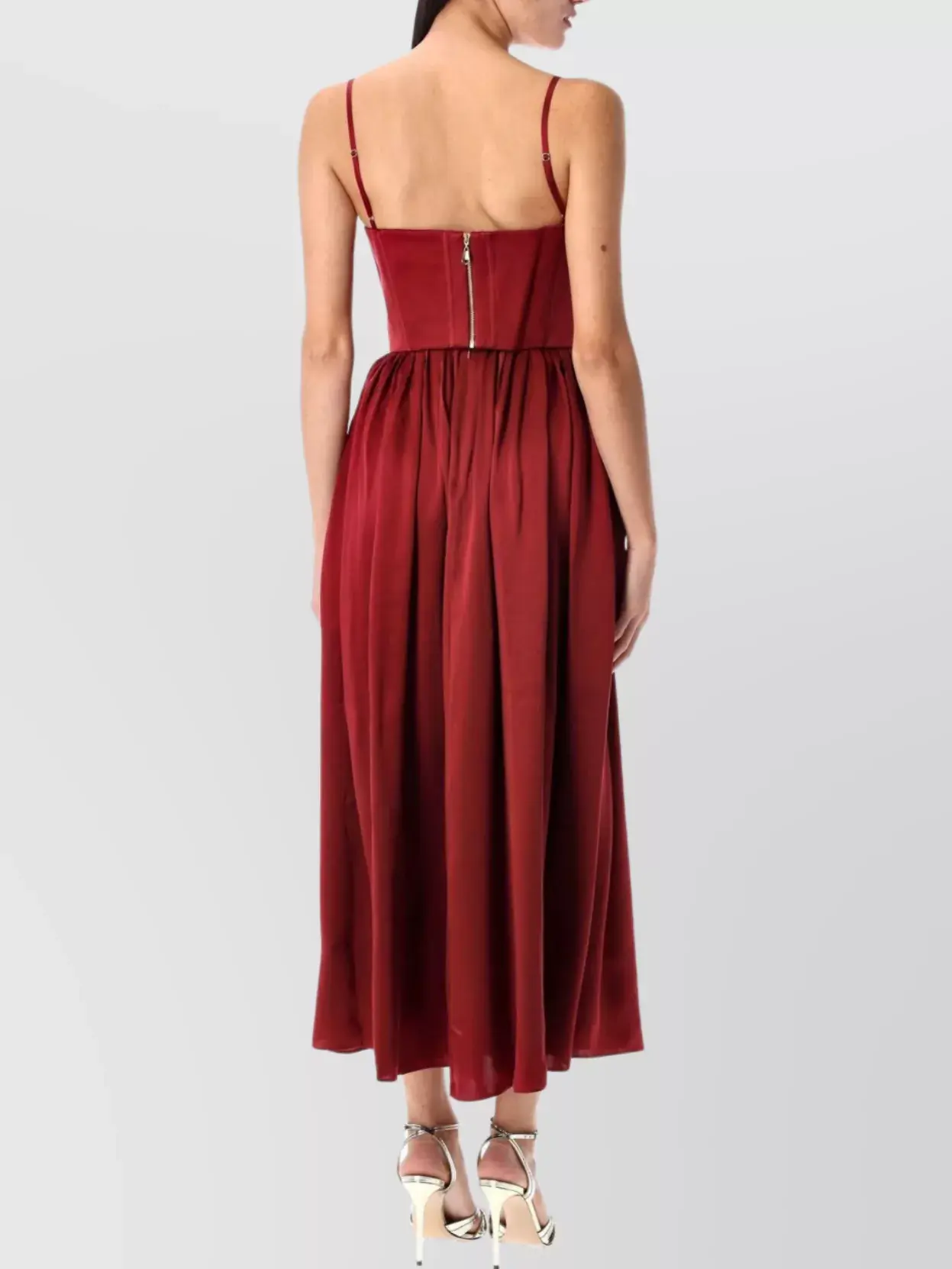 rear zip fastening adjustable spaghetti straps two side inset pockets boned bodice