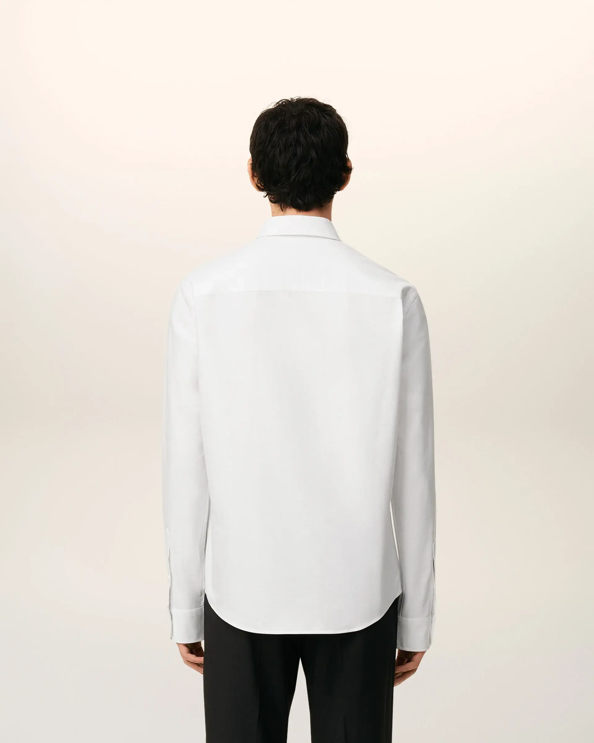 Classic fit Button down collar Buttoned tab on front and cuffs Mother of pearl buttons Black Ami de Coeur chest embroidery 77 cm center back length (size 40) Made in Bulgaria (with love)
