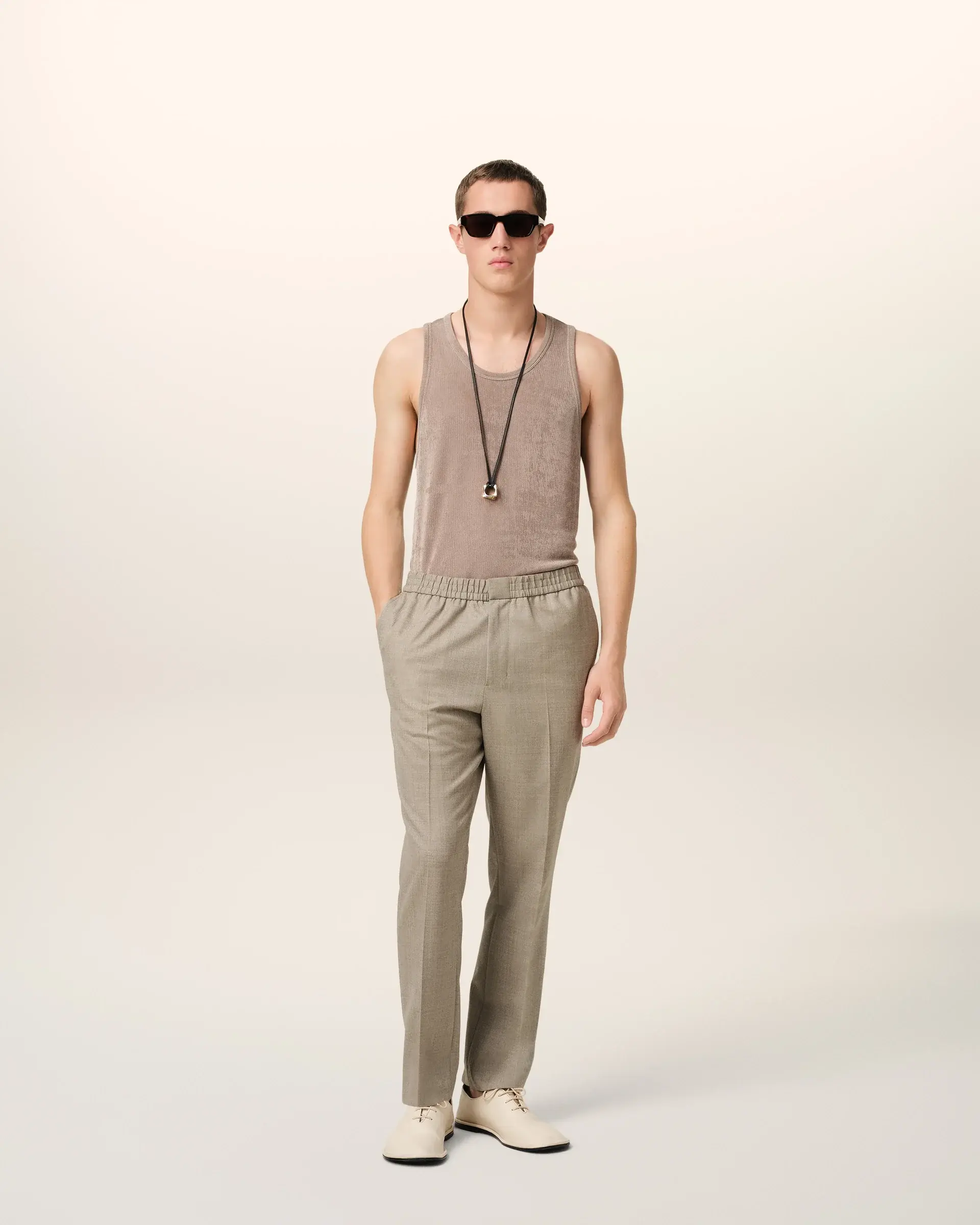SKU:Beige Wool Elasticated Waist Trousers
