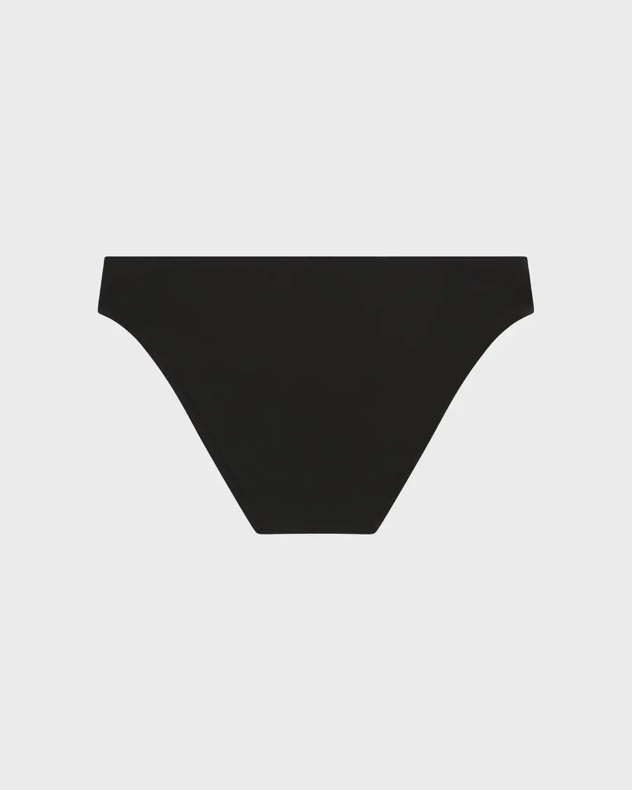 The Nadia bikini botom in black is a classic midi bikini bottom, cut from our luxury, Italian Sculpteur® fabric with patented 3-D stretch. Nadia has a subtle scoop at centre front to flatter the stomach and a regular cut leg and bottom. Team with any bikini top in black Sculpteur® fabric.