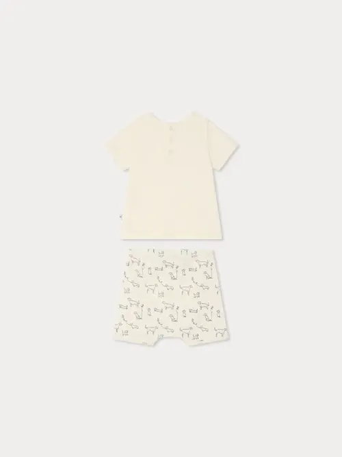 This Fanilo babies' set shows off an original dog and kite print. The organic cotton design fastens with snap buttons at the upper back.