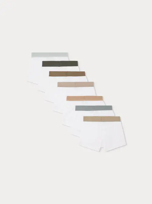 Featuring distinctive elastic waistbands in contrasting colors, every little boy's wardrobe needs this pack of 7 ribbed boxer shorts. Bonpoint's initial is embroidered on the front at the hem.
